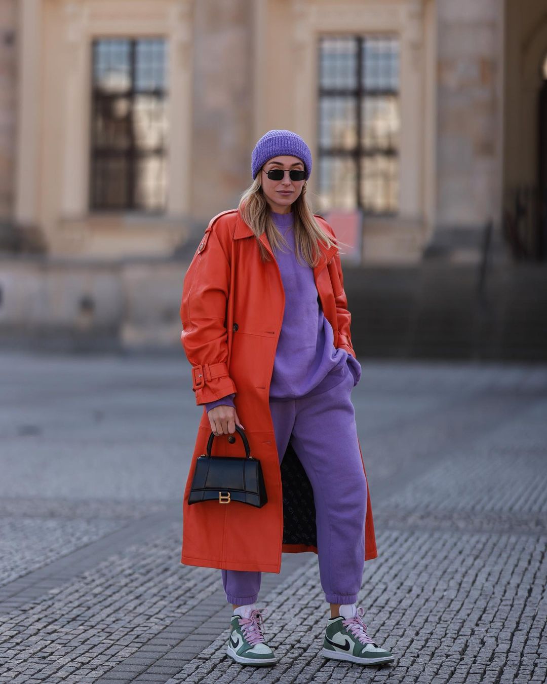 Poleg živahnosti na eni strani in nežnosti na drugi, je čar te barve v njeni vsestranskosti pri oblikovanju outfitov. Lahko se odločite za monokromatski videz, kjer kombinirate oblačila enakih odtenkov vijolične, ali pa vijolične kose kombinirate z ostalimi barvami. Najbolj drzne se boste odločile za neonsko zeleno, roza ali oranžno.
