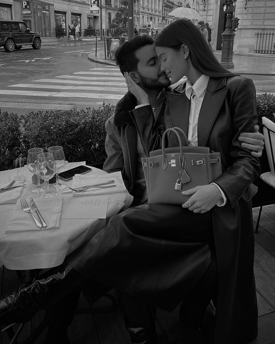 par, ki sedi na avtu in se objema