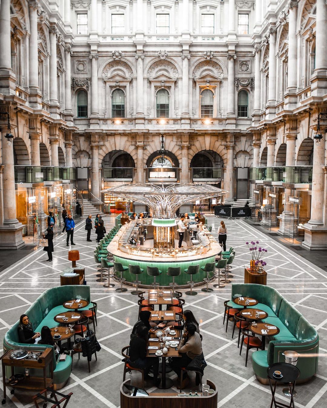 Skoraj sigurno ste jo med pohajkovanjem po mestu videli ali si jo celo pobliže pogledali, a resničen vtis naredi predvsem notranjost te kraljeve borze, ki je bila ustanovljena v 16. stoletju. Leta 2001 so arhitekti Aukett Fitzroy Robinson ikonično zgradbo temeljito preuredili in jo spremenili v luksuzno nakupovalno in gostinsko destinacijo. Bar in restavracija Fortnum & Mason je izmed 9 kulinaričnih lokacij, ki se nahajajo v stavbi, najbolj impresivna in pompozna, saj je postavljena v središče notranjega dvorišča. Idealna lokacija za sodoben koktajl ali angleški čaj.