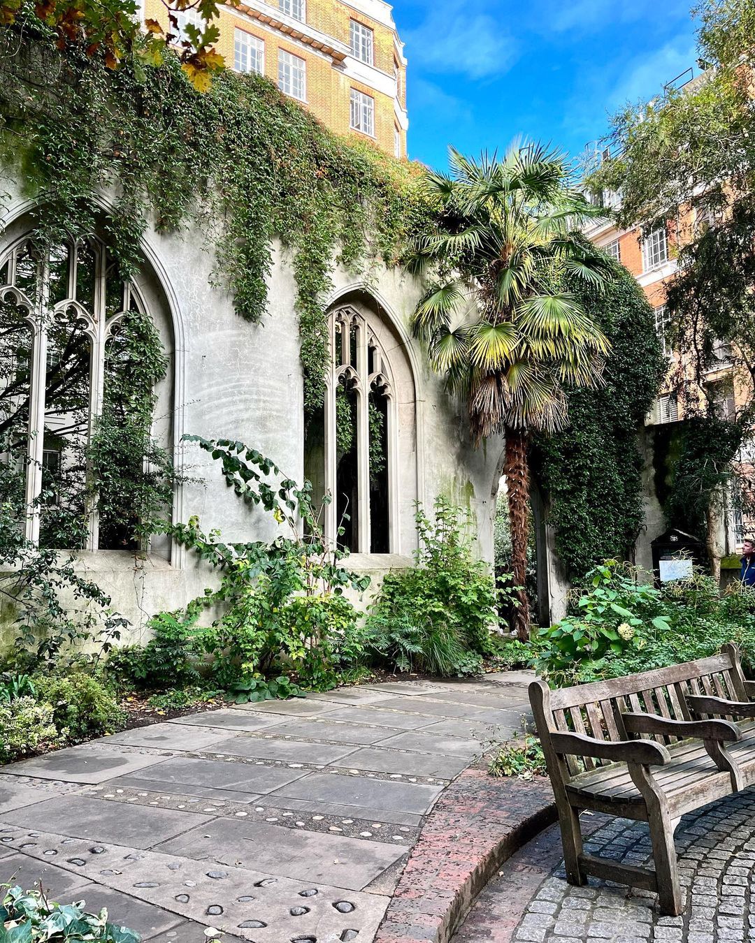 Bombardirane ruševine cerkve svetega Dunstana na vzhodu so unikatno prizorišče, ki jih obkroža čudovit park. V tej zeleni oazi lahko počivate na kateri od lesenih klopi ali se sprehodite mimo vodnjaka ter občudujete zgodovinske stene pa krasi živahno zelenje. Park se lahko najame za različne dogodke, sicer pa bodite previdni s fotografiranjem, saj je treba za večja in daljša snemanja za komercialne namene zaprositi za dovoljenje.