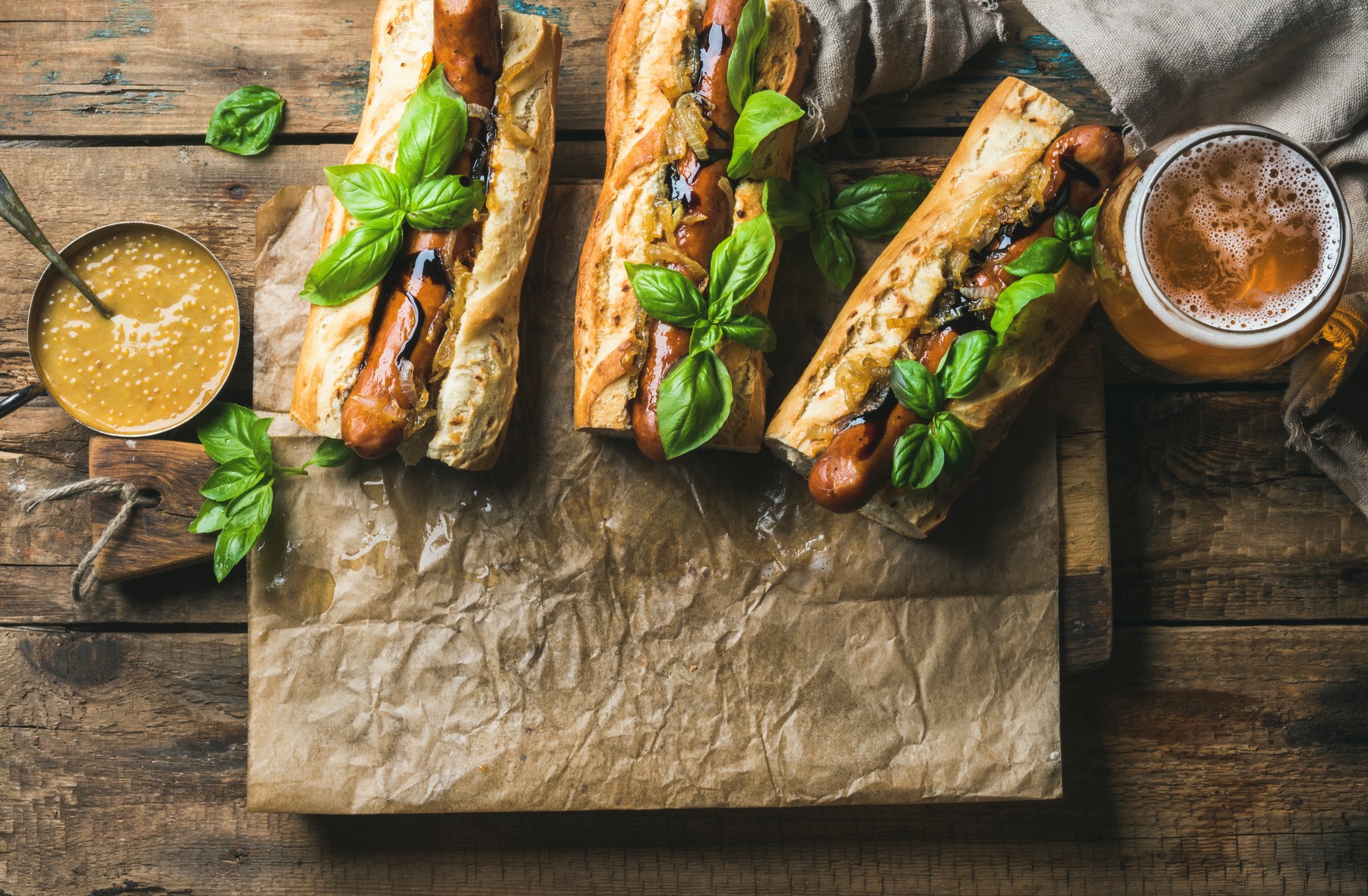Mesojedci lahko klasične mesne narezke zamenjate z na žaru popečenimi pivskimi klobasami, ki jim dodate namaz iz gorčičnih semen, karamelizirano čebulo in ščepec bazilike. Domači hotdog lahko v gurmanskega nadgradite še z dušenim belim ali rdečim zeljem ter osvežite z jogurtovo polivko.