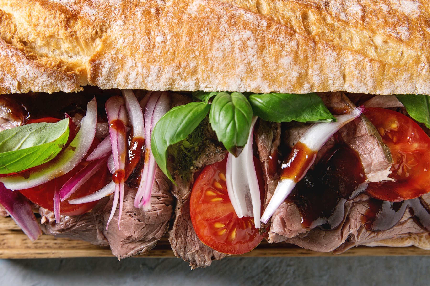 Ostanke odlične nedeljske pečenke, roastbeefa od včerajšnjega kosila ali meso iz goveje juhe lahko postanejo glavna zvezda vrhunskega sendviča iz bagete. Govedino lahko kombinirate s paradižnikom, čebulo in gobicami, k svinjini pa se odlično prileže bazilikin pesto, popečeni jajčevci in omaka iz brusnic ali jabolčni čutni.