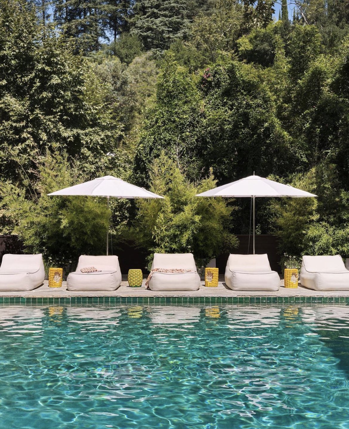 Sedežna garnitura, zelenje, bazen in posebna kopalnica ob bazenu izven hiše se ujemajo z njeno notranjostjo. “Delam od doma, zato sem želela, da vse izgleda spokojno,” pravi mlada milijonarka.