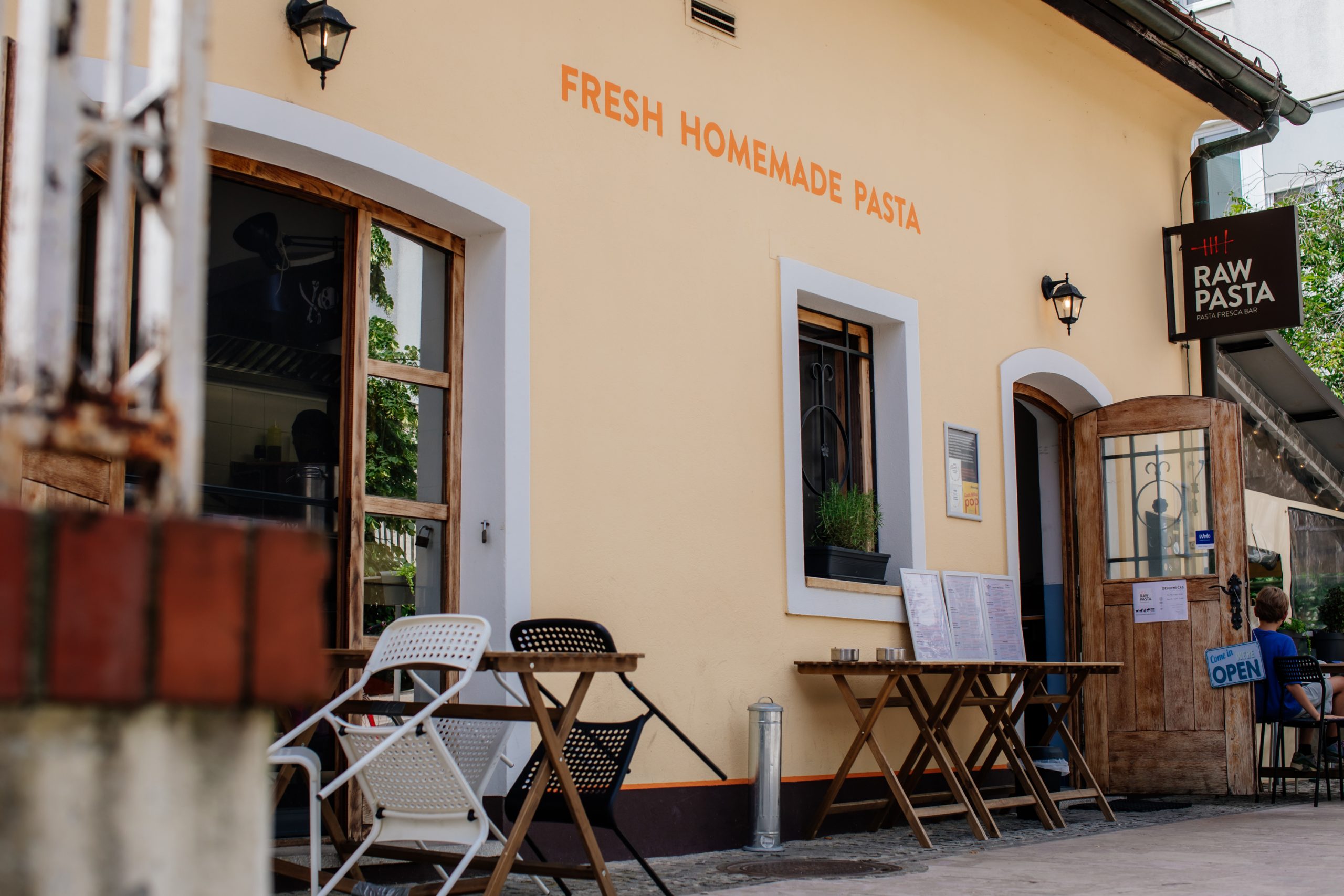 Raw Pasta – Pasta Fresca Bar na Trubarjevi cesti je prikupen lokal, v katerem sta združena vsa italijanska barvitost in gostoljubnost. Tu imajo tudi čudovit pokrit vrt, na katerem se skriti pred mestnim vrvežem prepustimo uživanju življenjа in obilne porcije testenin.