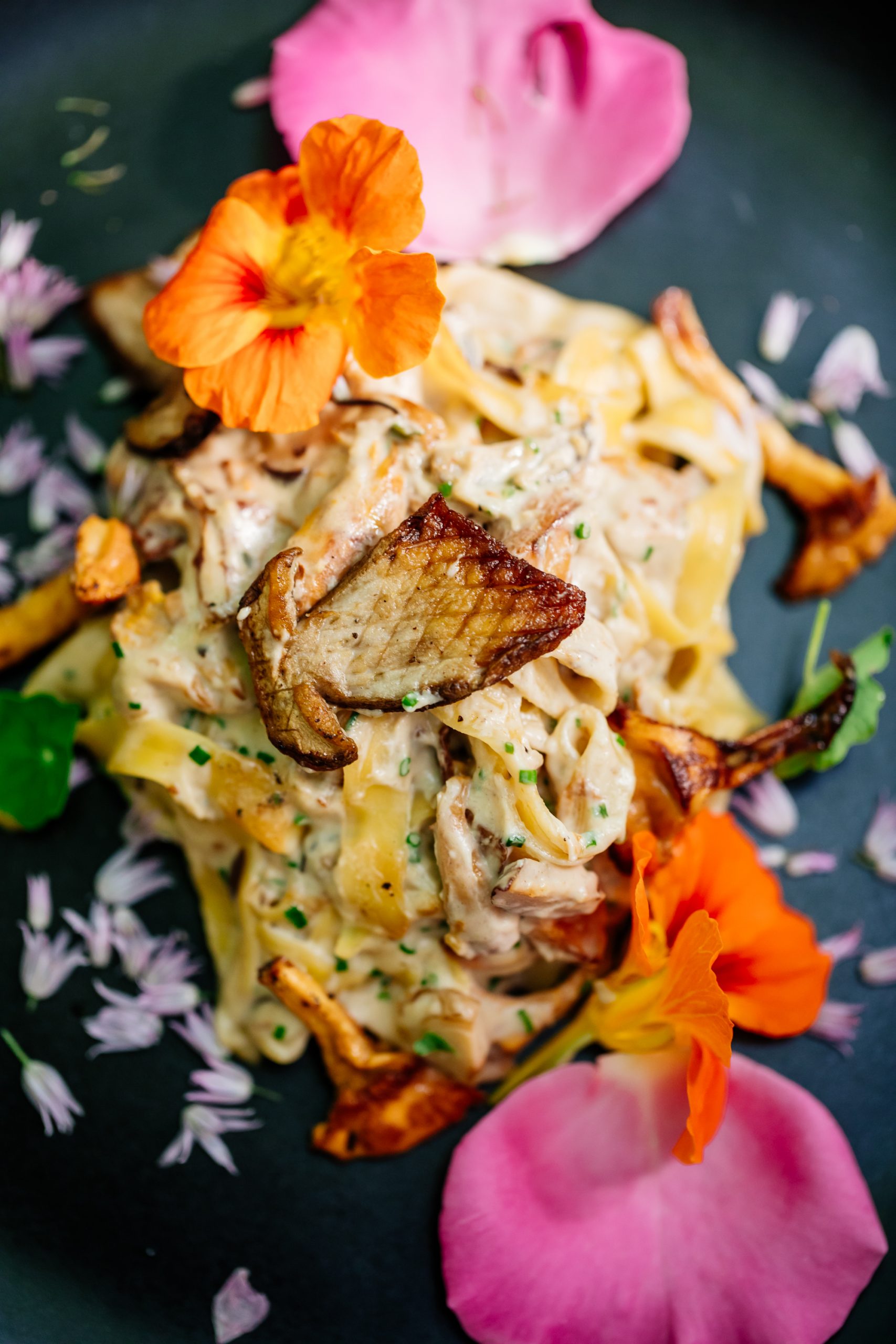 Krožnik je že na mizi in kot smo pričakovali, je vse prej kot dolgočasen in predvidljiv. Široki rezanci v družbi kremaste aromatične omake in obilno okrašeni z jurčki na žaru in cvetjem z vrta restavracije. Praznik za čute vsakega sladokusca. Avtor te in drugih izvirnih in nekonvencionalnih interpretacij klasičnih jedi je kuharski mojster Uroš Gorjanc s svojo ekipo. Zaključimo lahko le, da jim je stoletno družinsko tradicijo uspešno uspelo vpeti v sodobne kulinarične mojstrovine.