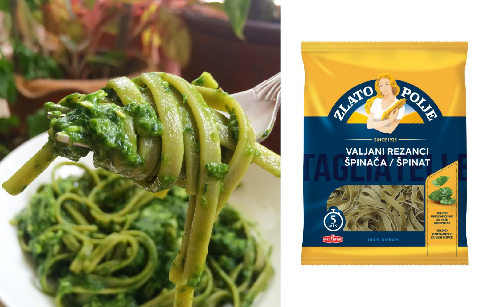 Ob hitrem tempu življenja in neštetih opravkih nimamo časa sami pripravljati testenin. Zlato Polje, ki ima bogato zgodovino proizvodnje najrazličnejših testenin za vse gurmane, proizvaja valjane rezance z okusom špinače.