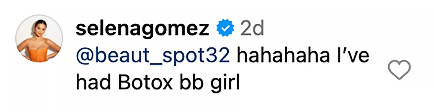 Sledilci so namreč začeli komentirati tudi njen izgled in med drugim dejali, naj si “odstrani polnila v licih,” na kar pa se je odzvala kar Selena sama. Brez dlake na jeziku jim je odgovorila: “Šla sem na botoks.”
