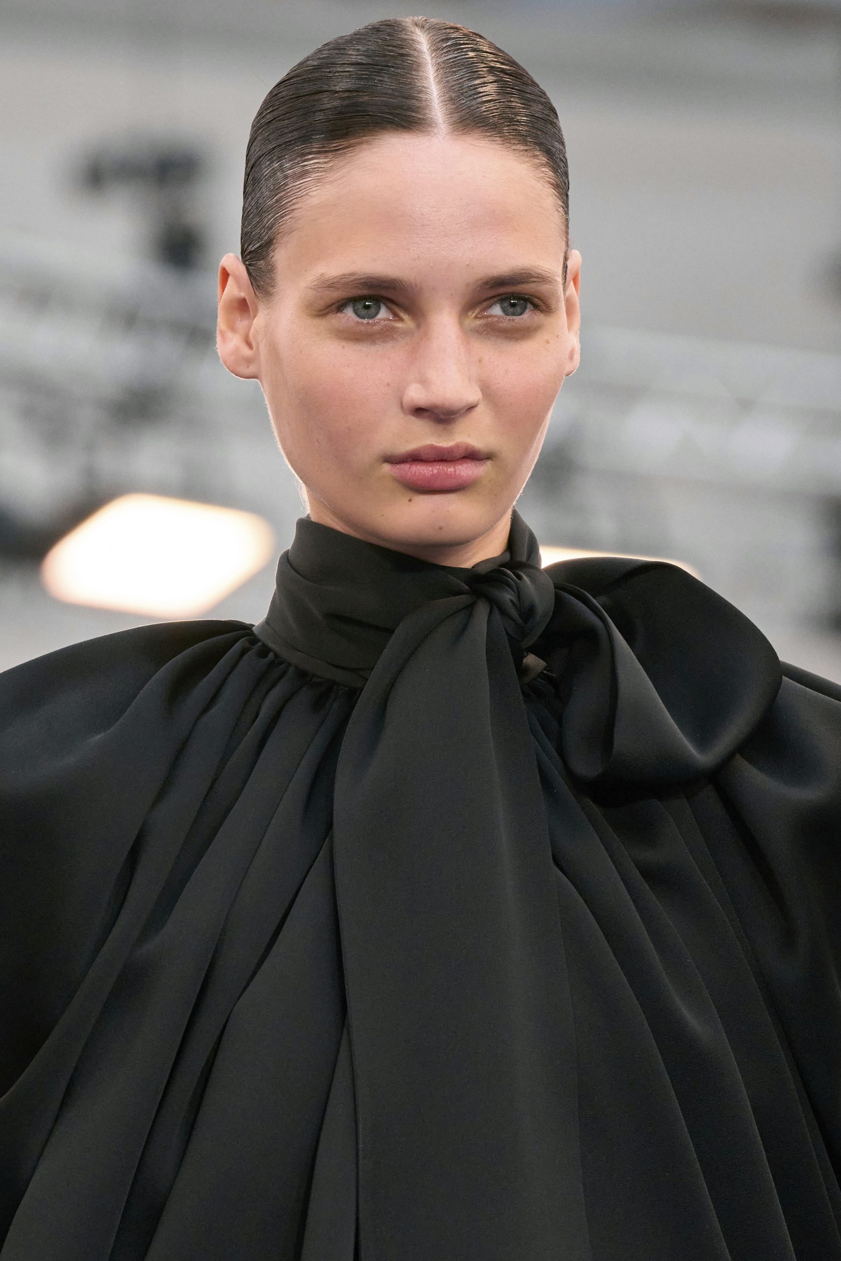 Komaj opazno ličenje smo videli pri Carolini Herreri in na revijah Vaulthier, Simone Rocha in Miu Miu. Vse, kar potrebujete, je nežo rožnato rdečilo, šminko za ustnice v barvi vaših naravnih ustnic in izdelke za nego obrvi. Veke obarvajte s senčilom v naravnih odtenkih z mat ali rahlo svetlečim učinkom. Manj je več!