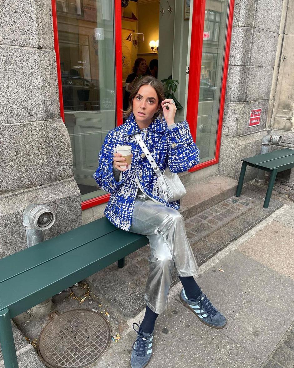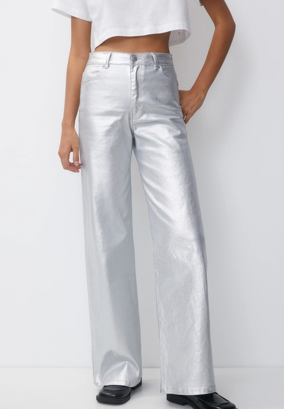 Metalik videz, še posebej srebrn, je eden najpomembnejših odtenkov te sezone in vidimo ga povsod, od nakita in čevljev do hlač. Kovinsko srebrna izgleda še posebej kul v široki silhueti.