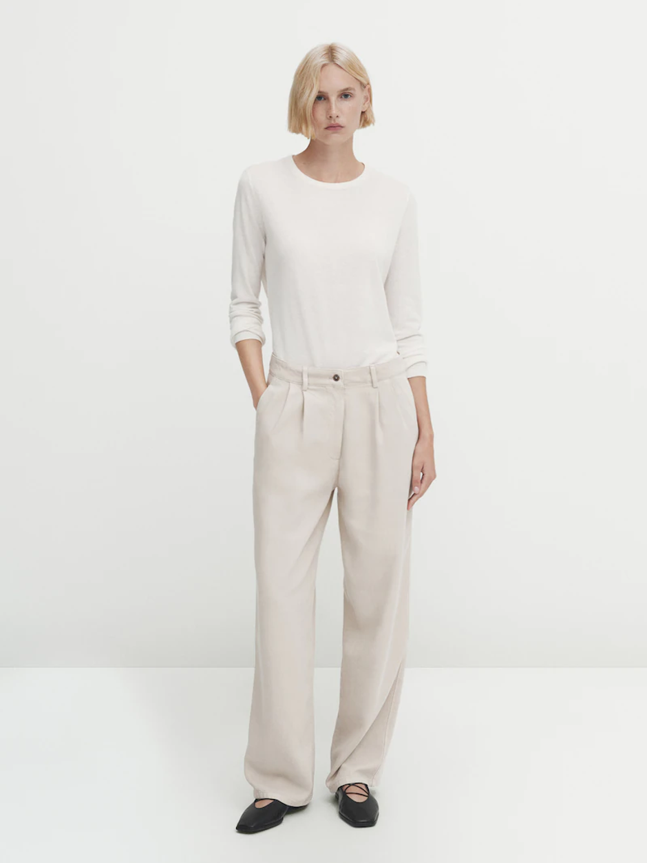Čeprav v jesensko-zimskem času prevladujejo temnejše barve in debelejše tkanine, lahko kakšni kombinaciji dodamo hlače iz svetlejšega blaga in v svetlejših odtenkih, kot sta krem ali bež, ki jo bodo v hipu osvežile.