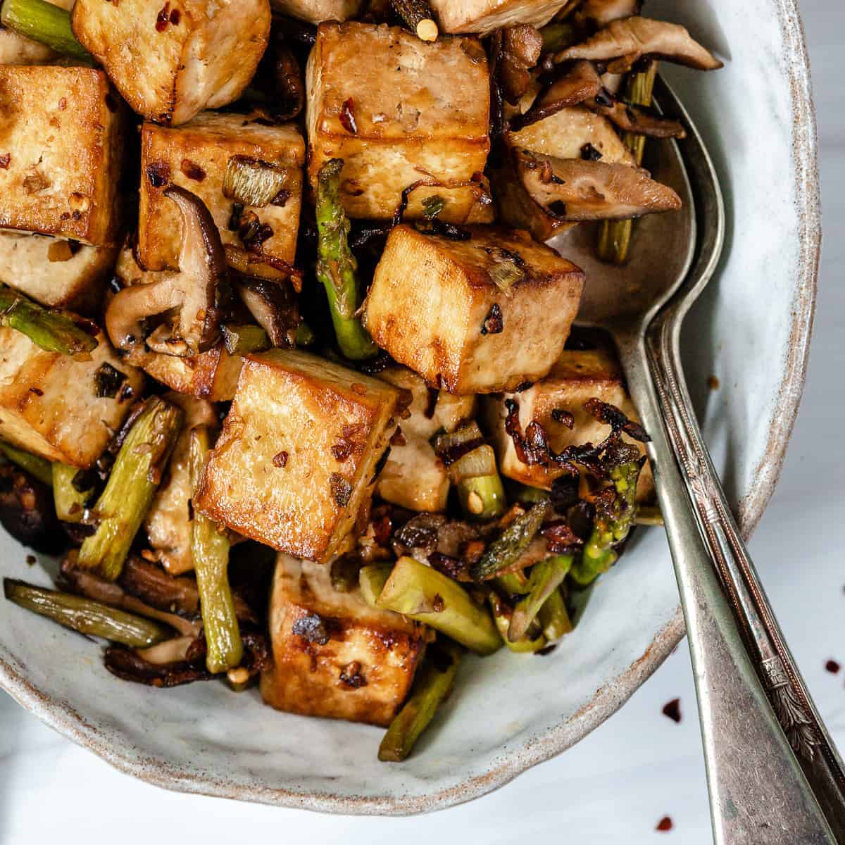 Četudi šparglji niso tipična azijska sestavina, to ne pomeni, da je ne morete vključiti v azijske jedi. Pripravite stir fray v voku s šparglji, na kocke narezanim tofujem in šitake gobami. Zraven servirajte riž ali poljubne azijske rezance.