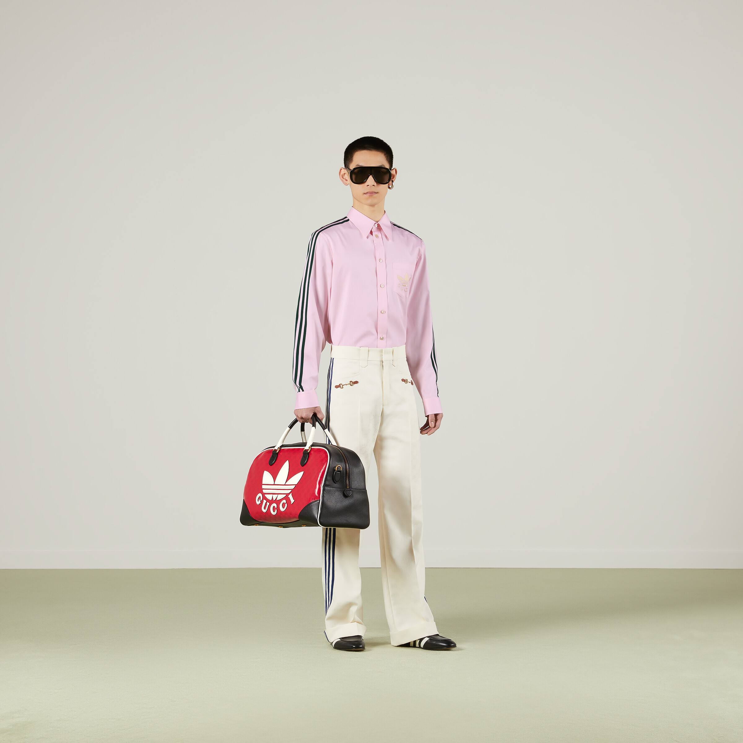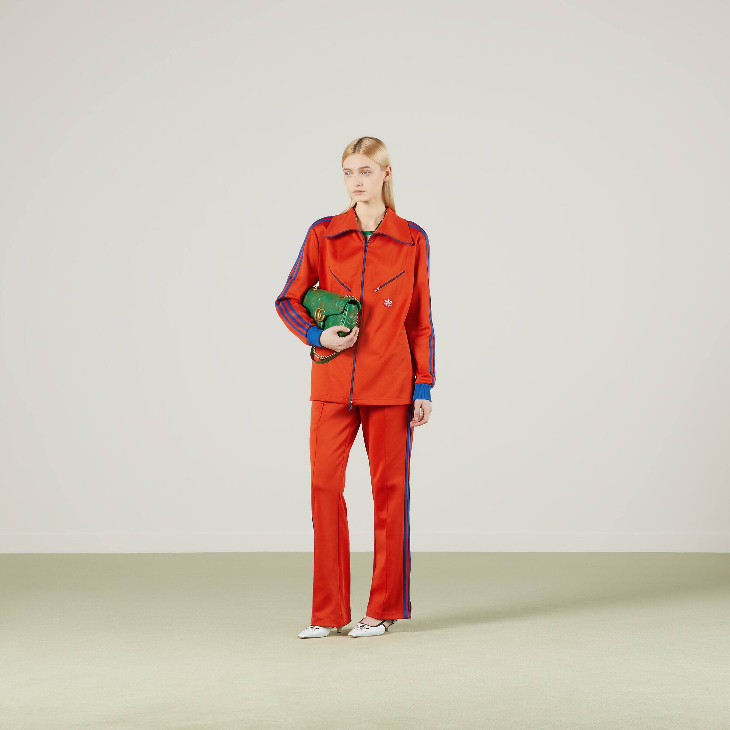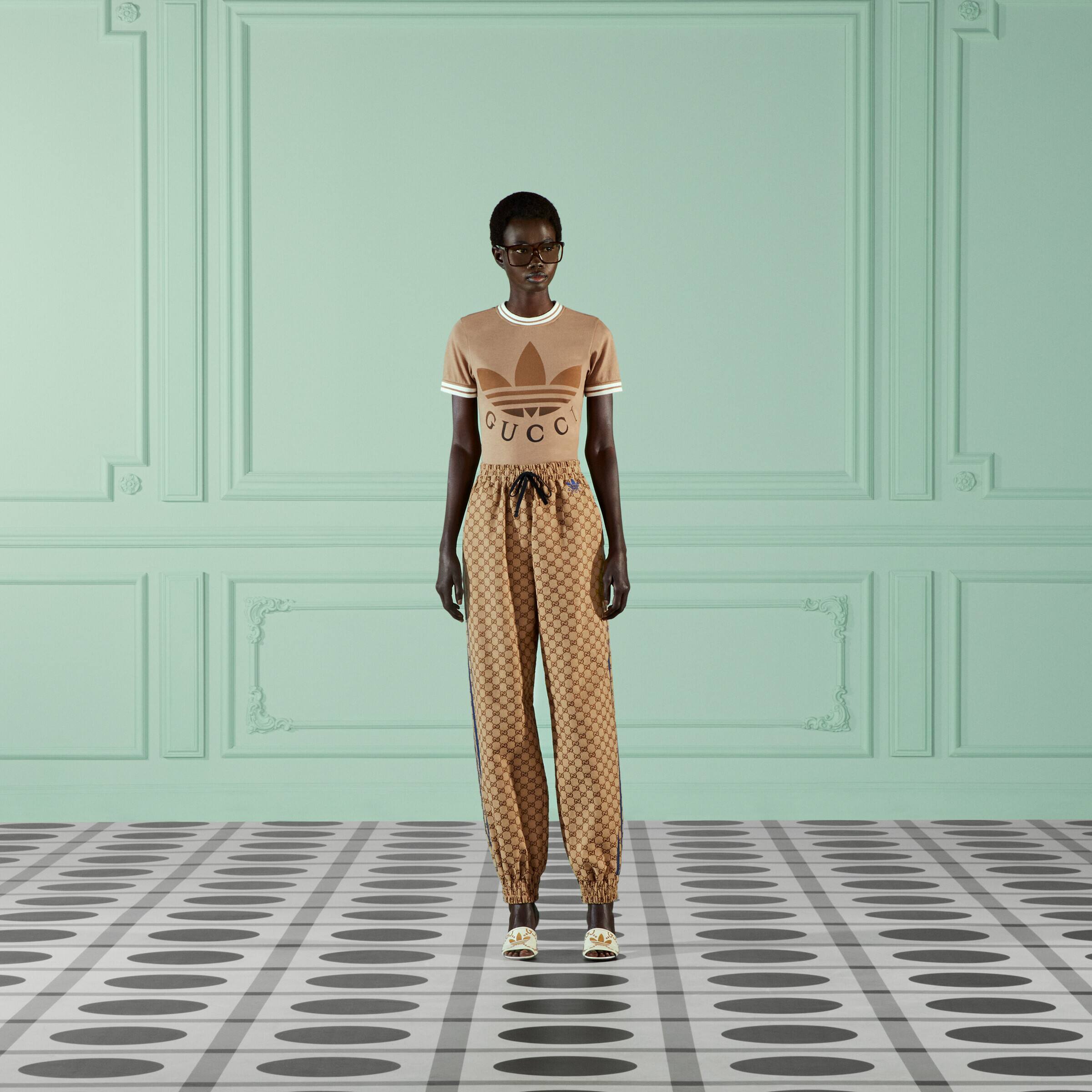 Zaznamuje jo festivalski šik, v njej pa najdete vrsto satenastih jopičev, žametnih trenirk in ujemajočih se kratkih hlač ter natikačev. Vsak kos je okrašen z Adidasovim logotipom in Guccijevim značilnim vzorcem. Kapsula vključuje tudi veliko izbiro bejzbolskih kap, klobukov ter potovalnih torb in nahrbtnikov.