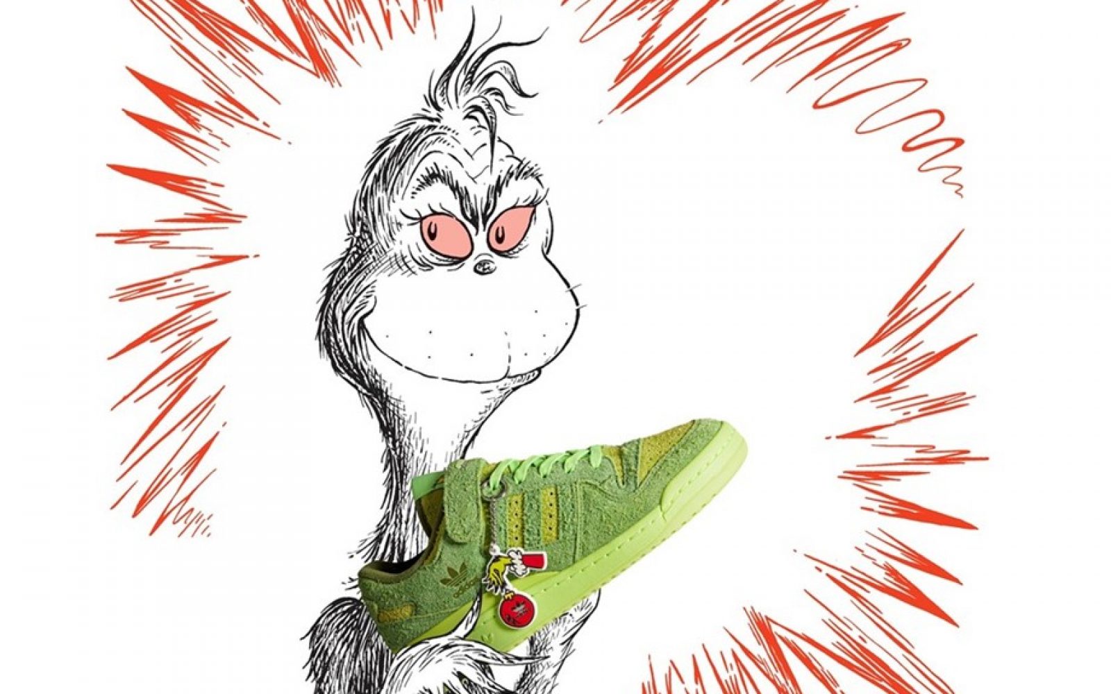 Prazničnemu razpoloženju pa se je pridružil tudi adidas. Ta športni velikan je svoje superge Forum odel v kosmat zelen material v čast Grinchu, priljubljenemu liku dr. Seussa, ki je ukradel božič.
