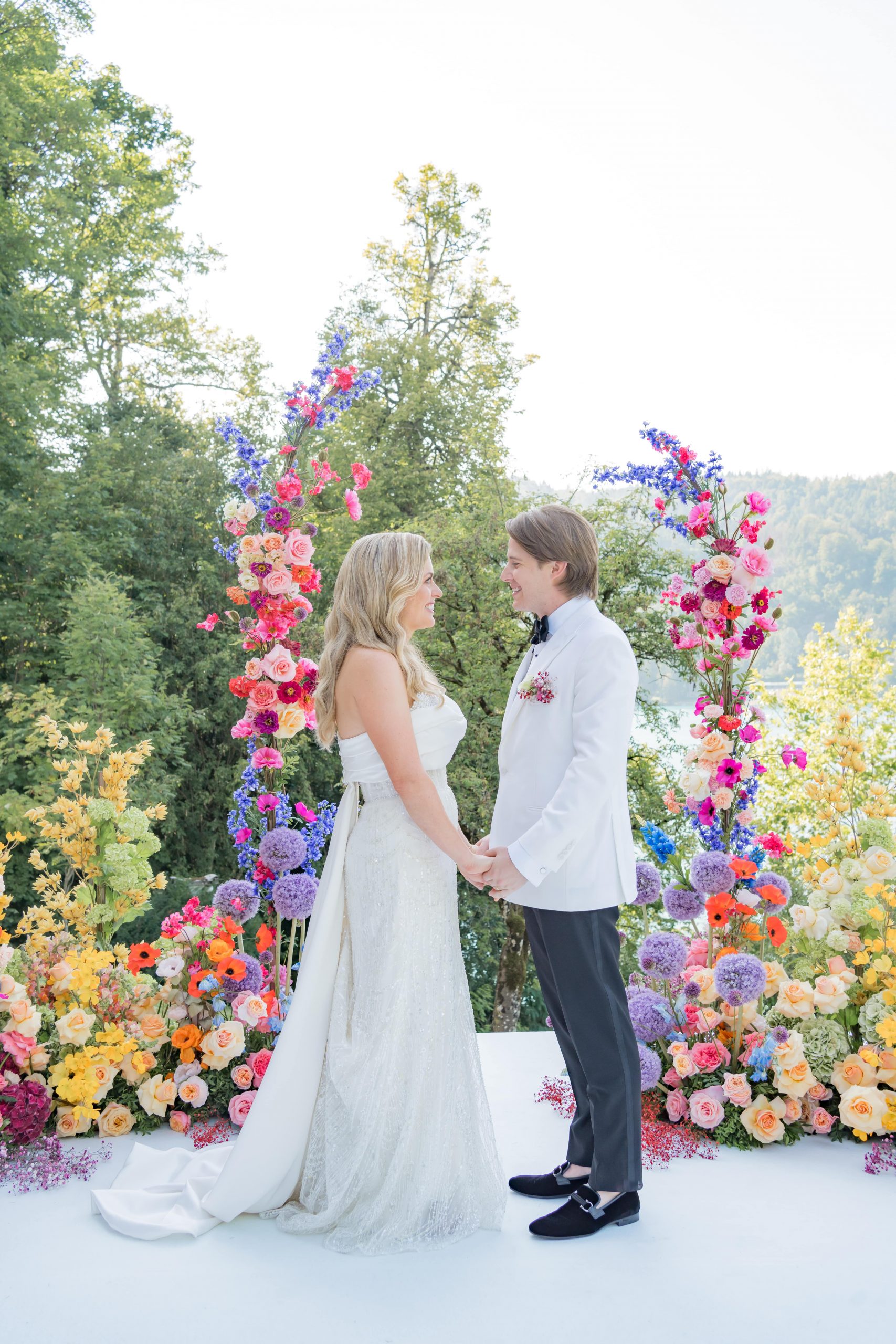 Tudi obok, pod katerim bosta izrekla usodni da, je lahko oblečen v žive barve. Metka navdušeno predlaga celo več poročnih obokov! Zakaj bi razmišljali o enem, če se lahko sprehodite skozi tri ali več?