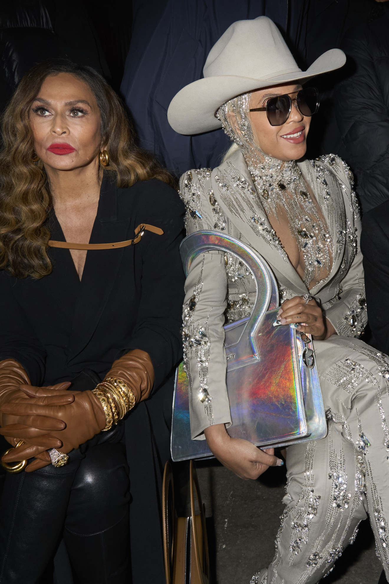 42-letno glasbeno ikono so opazili v prvi vrsti modne revije Luar, kjer sta ji družbo delali sestra Solange in njuna mama Tina. Beyoncé je za ta poseben dogodek, na katerem je podpirala svojega nečaka in njegov manekenski debi, oblekla ekstravagantno kantri opravo.