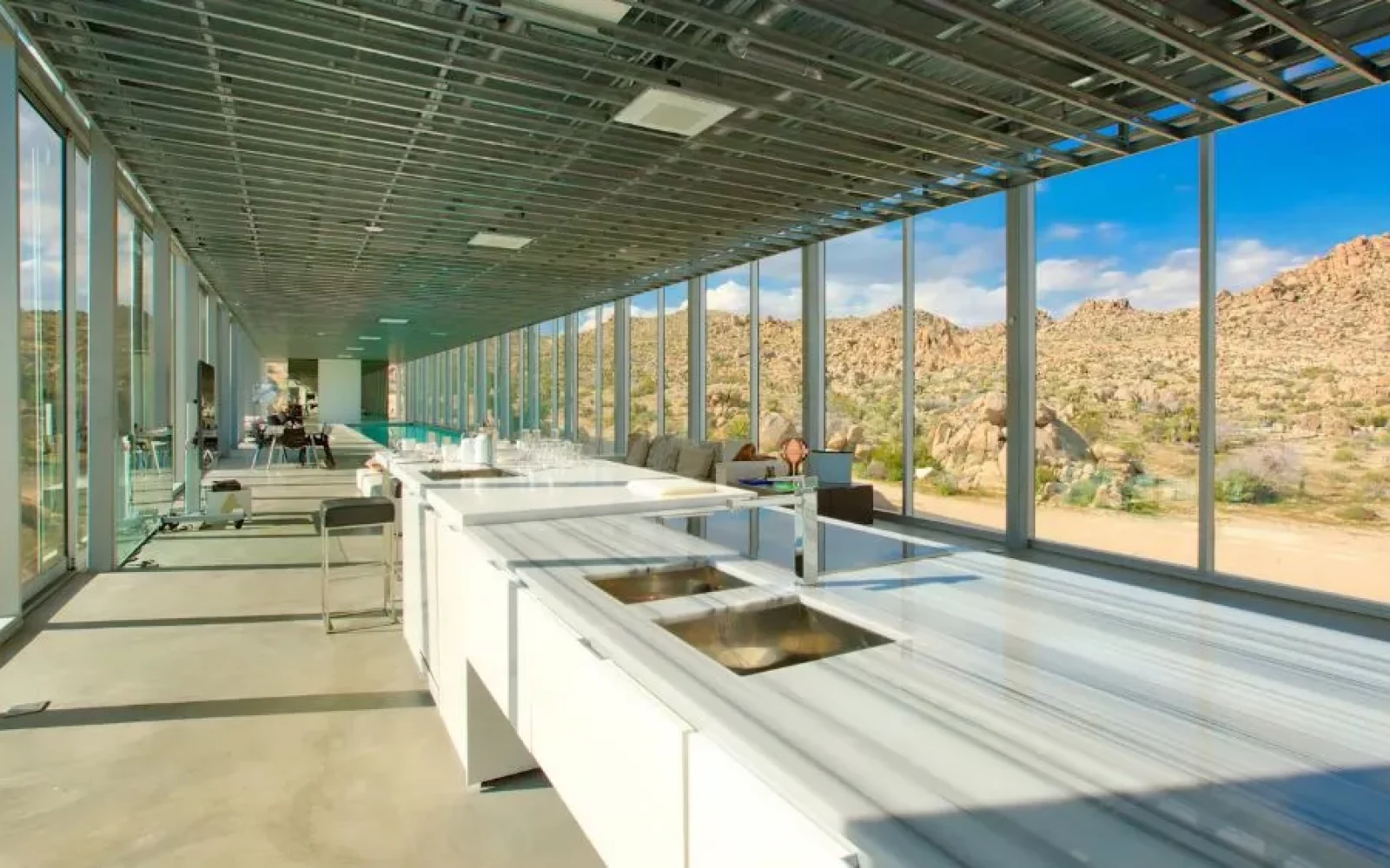 Neverjetna hiša Joshue Tree, ki se nahaja v puščavi Mojave, je znana kot nevidna hiša. Ime je dobila po odsevni stekleni fasadi, ki odseva okoliško skalnato pokrajino in se zlije z neukročeno pokrajino nacionalnega parka. Odvisno od časa dneva in vremena se vam bo po dnevih potepanja po puščavi na trenutke zdelo, kot da je le iluzija, saj je njen minimalističen dizajn premišljen do najmanjše podrobnosti.