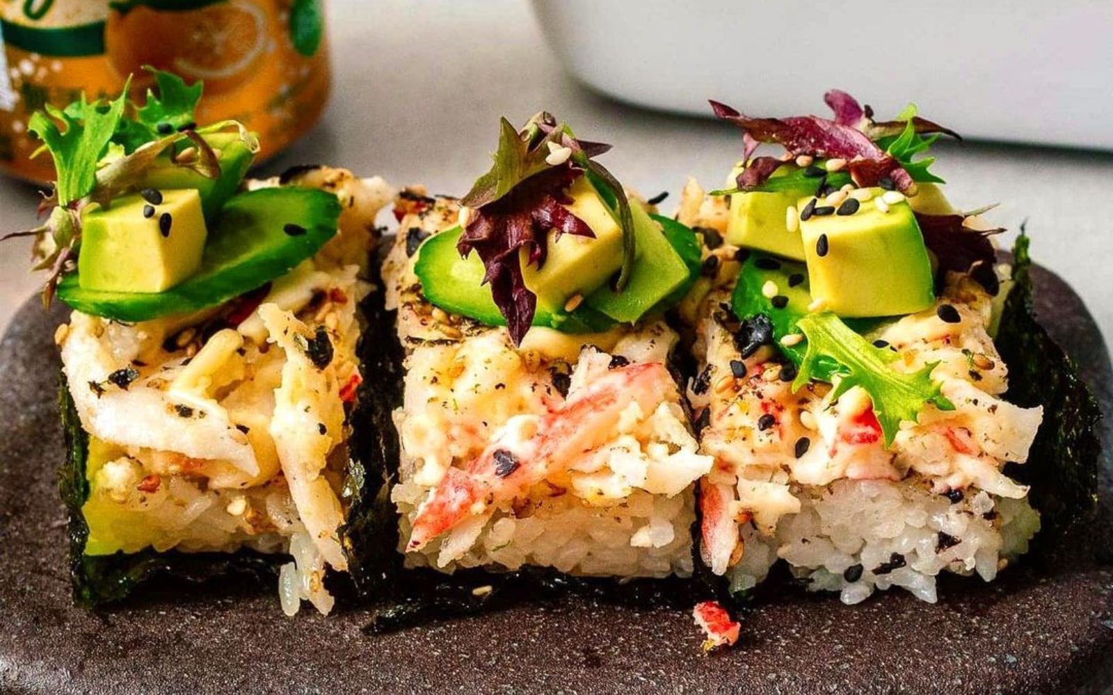 Blogerja Mike in Steph, ki ustvarjata kulinarični blog I am a food blog, predlagata, da si vzamete čas in pripravite pravi suši riž z riževim kisom, sladkorjem in soljo. Čez dodajte furikake posip s sezamom in algami. V posodi posebej pripravite osnovo za suši. Lahko se odločite za losos, rakovo meso ali poljubno vrsto morskih sadeže ali rib, ki jim dodate kremni sir.