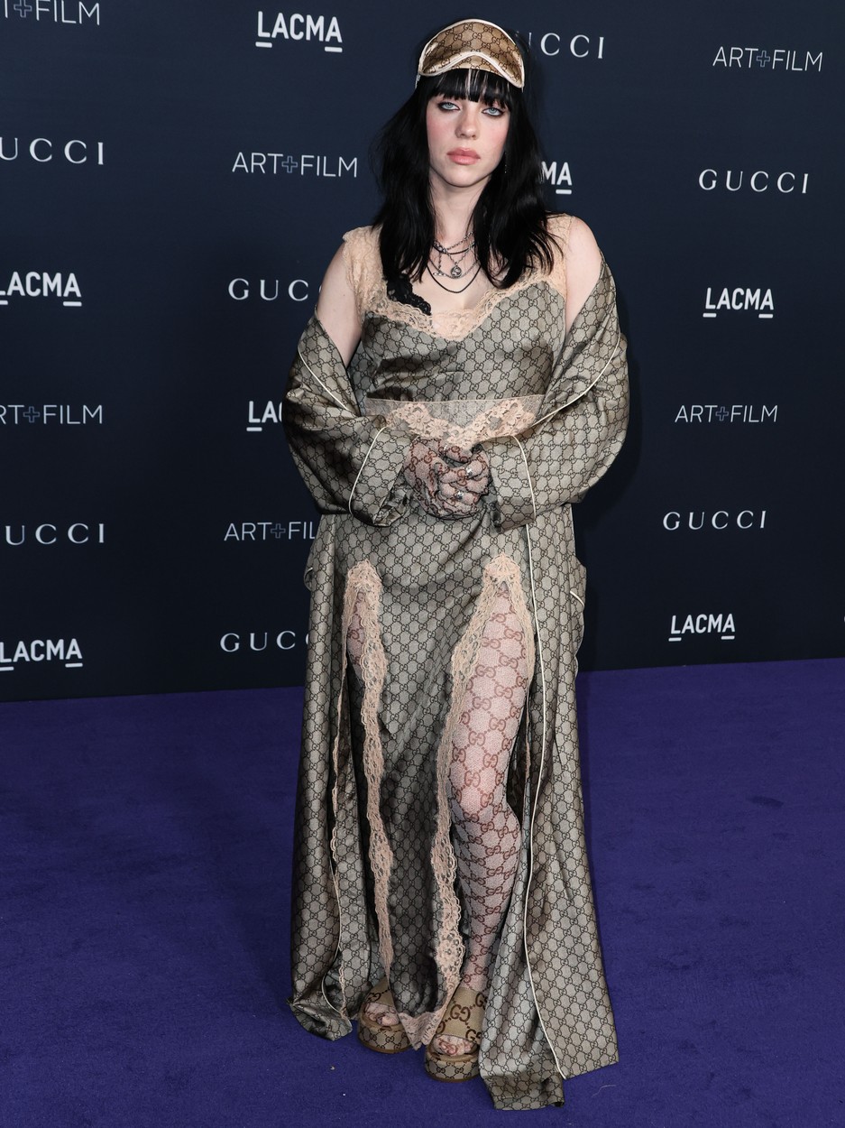 Obe sta nosili tudi Guccijeve čevlje, Eilish pa je svoj videz dopolnila z masko za oči z monogramom.