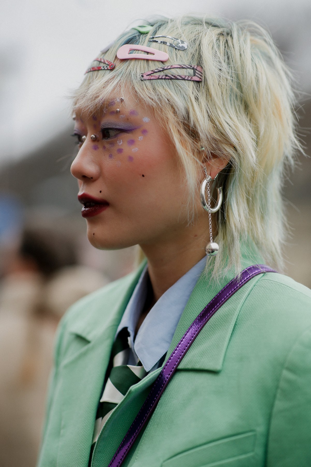 Enako kot pri sončnih očalih, je bila kreativnost glavno vodilo pričesk na modnih ulicah Pariza. Lasje so namreč dobili takšne in drugačne dodatke. Običajnih sponk in rutic v laseh smo sicer vajeni, malce manj pa punkerskih špic, okraskov, ki spominjajo na piercinge ter kičastih kroglicah, kakršne smo si v lase pletle v osnovni šoli v devetdesetih.