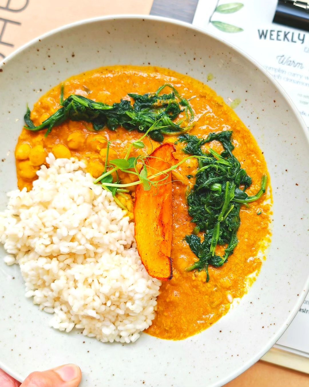 Naročile smo hokaido curry s čičeriko in rižem, lazanjo s solato in burger z veganskim ‘piščančjim’ polpetom in krompirčkom. Za začetek smo si razdelile skledo hišne gobove juhe, kosilo pa zaključile s čokoladno pito in posebno figovo sladico z veganskim maskarponejem.