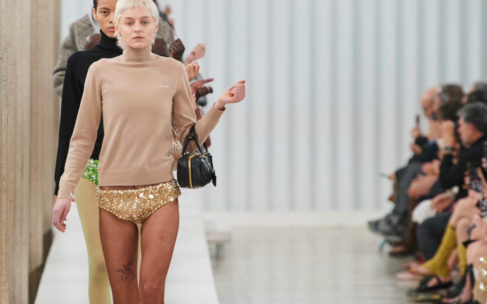 Na modni reviji Miu Miu za jesen/zimo 2023 so pozornost javnosti pritegnile z bleščicami okrašene spodnje hlače v zlati, roza in zeleni barvi, ki so jih manekenke nosile v kombinaciji z visokimi petami in puloverji. Seveda spodnje hlače ne bi bile nič posebnega, če ne bi na etiketi imele pripete vratolomne cene. Zanje je namreč treba odšteti 5600 dolarjev (kar je 5300 evrov).