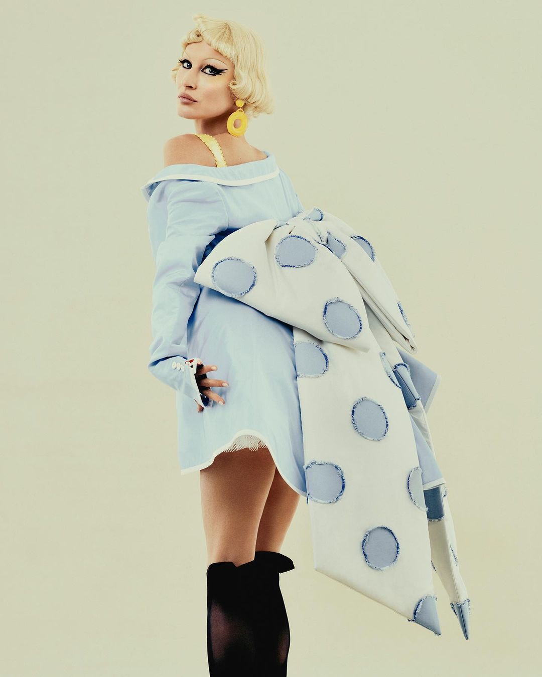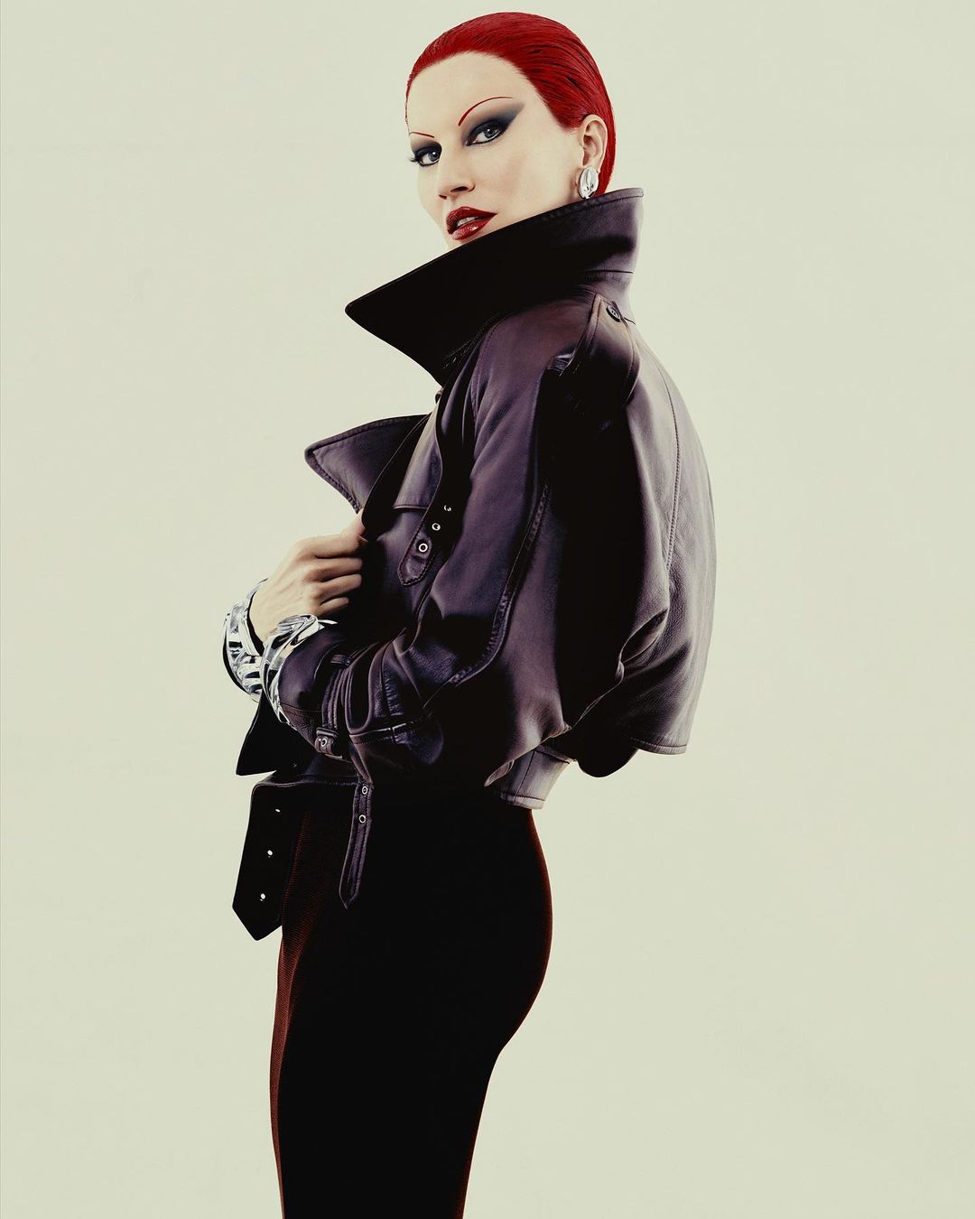 Za drzno naslovnico italijanske izdaje so jo namreč preobrazili v popolnoma rdeč videz: oblekli so jo v kreacijo Maison Valentino, vse skupaj pa dopolnili z ujemajočimi se nohti ter ognjeno rdečimi lasmi in ustnicami. Okrasili so jo še z uhani znamke Kenneth Jay Lane in zapestnicami znamke Patricia von Musulin, neprepoznavno pa jo delajo predvsem obrvi v stilu charlestona.