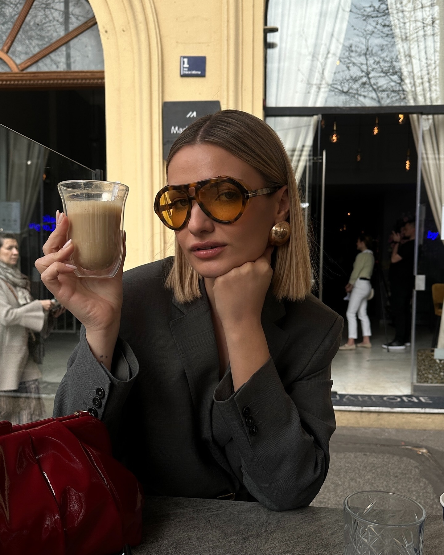 Aviatorska očala obožuje tudi Dunja Jovanić, ki je k svojim kombinirala svetle kavbojke, preprost črn top in črtast pulover v nevtralnih tonih. Seveda nobena od modnih vplivnic ni pozabila tudi na zlat nakit, ki doda piko na i njihovim trendovskim videzom.