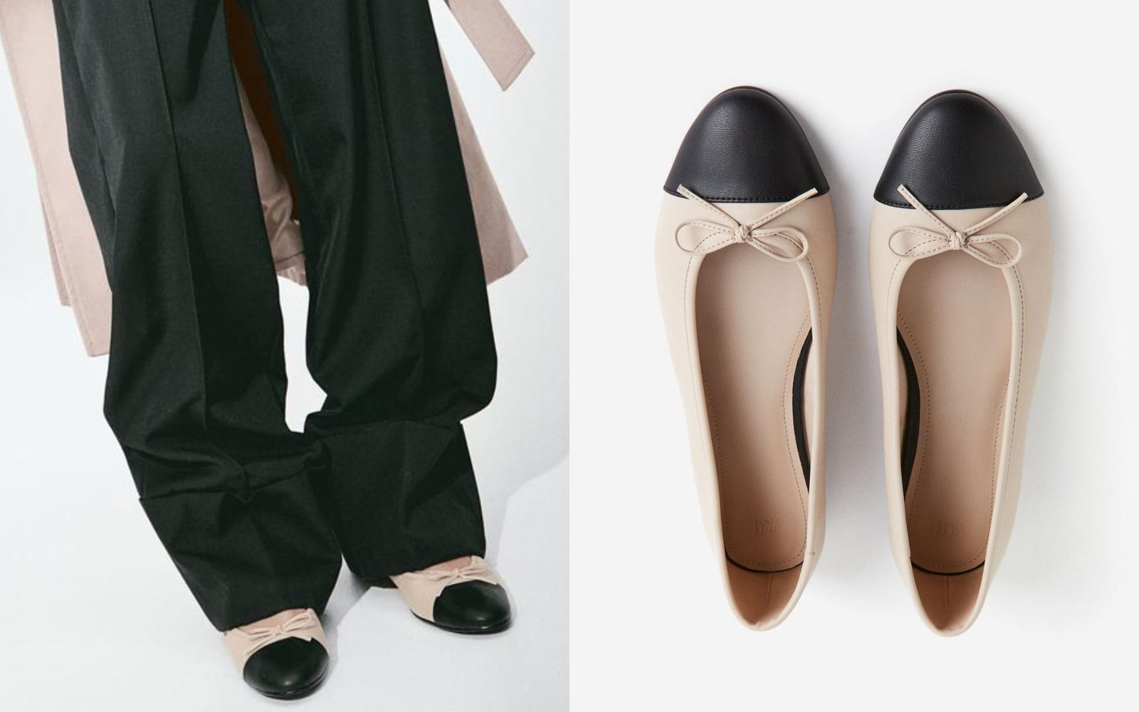 Gre za bež model balerink s črnim sprednjim delom, ki nas ravno zaradi te kombinacije barv neustavljivo spominja na Chanelov model balerink, ki velja za enega najbolj znanih in ikoničnih.