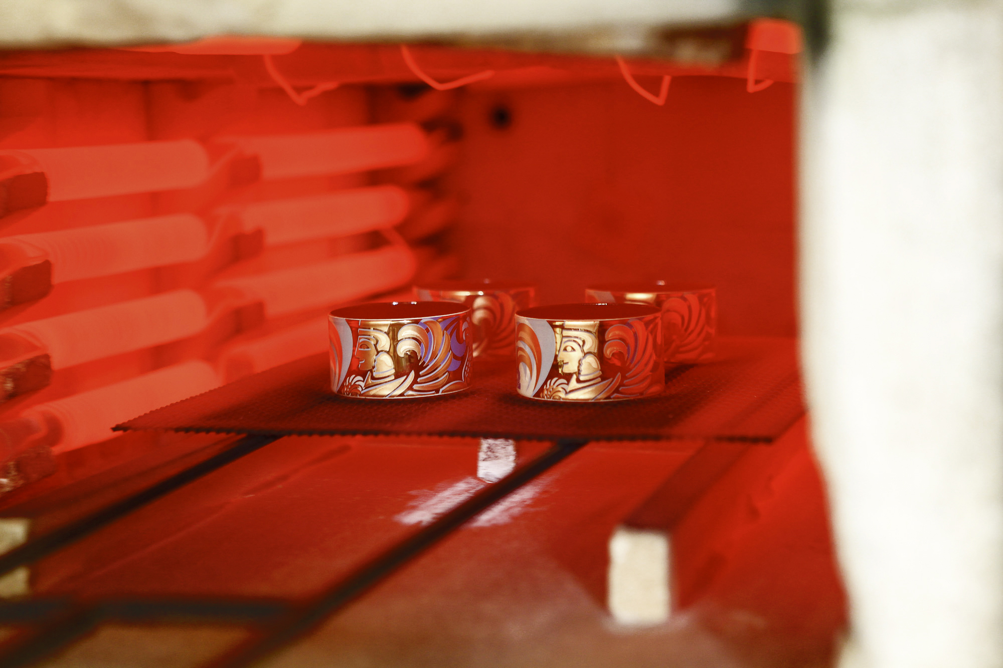 Sledi posebni postopek žganja imenovan dekorbrand, ter poliranje, nato natančna ročna poslikava in še enkrat žganje. Okvir za emajl je bodisi pozlačen s 24-kt zlatom, bodisi prevlečen s kombinacijo rodija in paladija ali pa je okvir narejen iz 18-kt zlata.