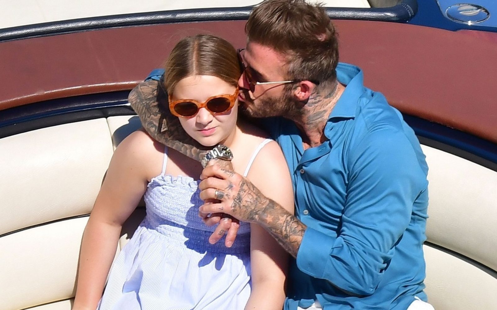 Medtem pa je njen slavni oče v kombinaciji klasične modre srajce in modrih kavbojk izžareval lahkotno prefinjenost. S Harper sta na gondoli veselo klepetala in se hihitala, potem pa si privoščila tradicionalno italijansko kosilo.
