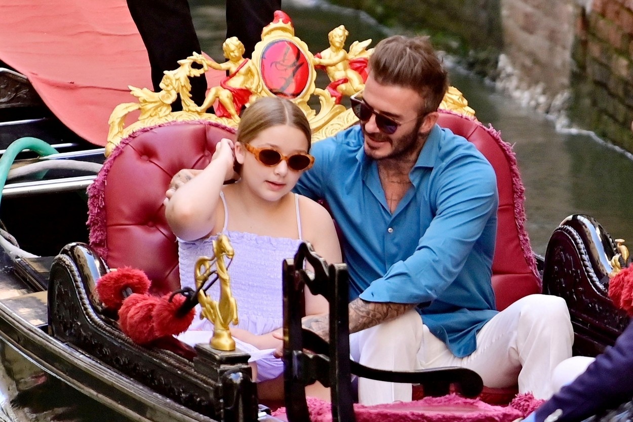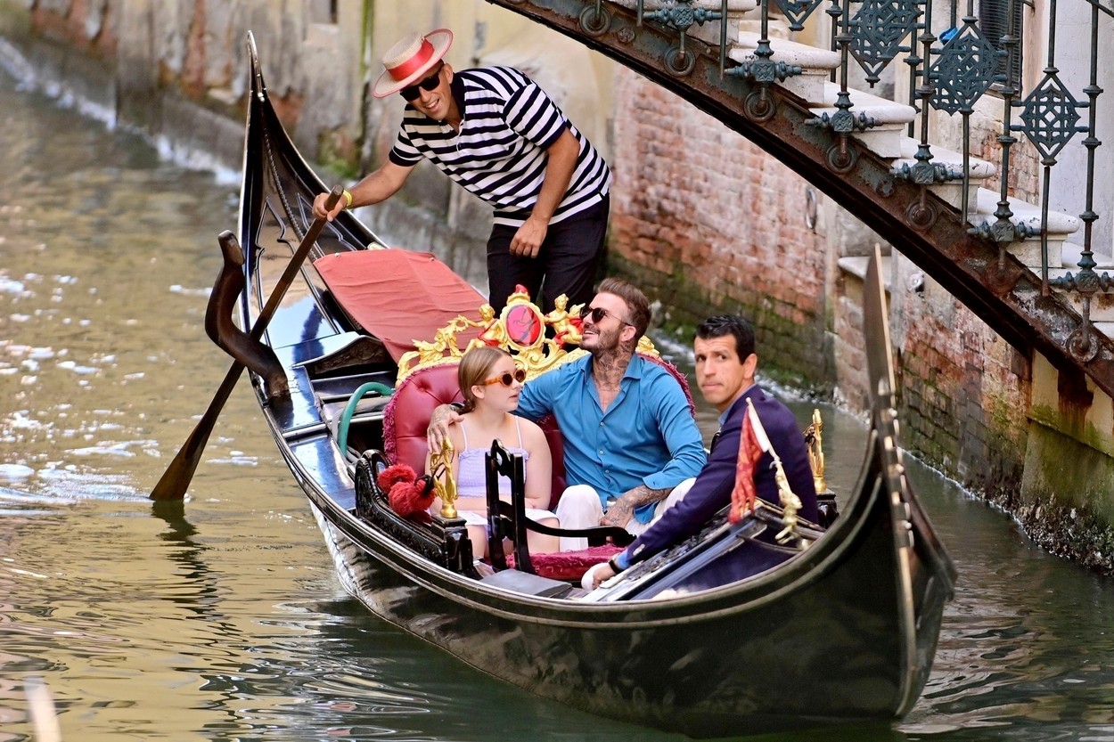 Ponosni oče štirih otrok, ki si z ženo Victorio deli sinove Brooklyna, Romea in Cruza, je vidno užival v vožnji po beneških kanalih in hčerki ponosno razkazoval italijanske znamenitosti.