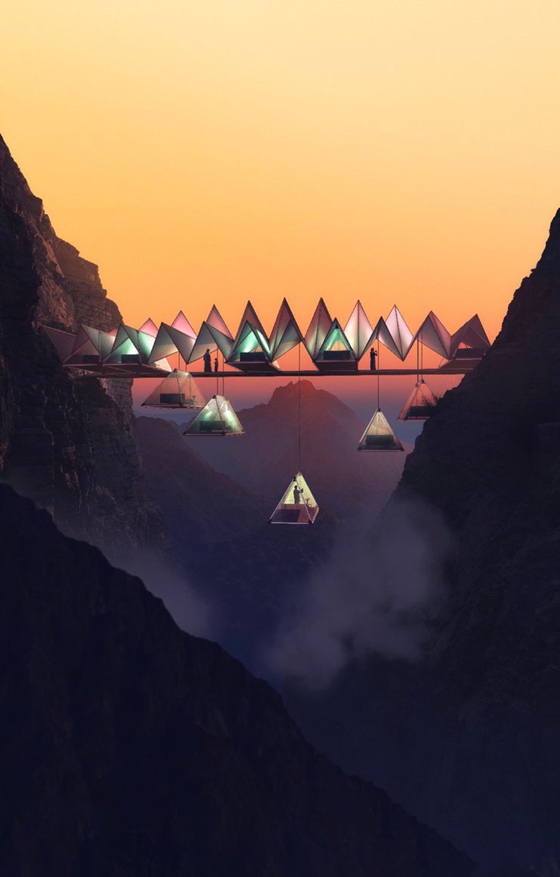 Floating Retreat je bil načrtovan kot poglobljen pobeg v gore mesta Sharjah v Združenih arabskih emiratih. Ta pa združuje vznemirljivost pustolovščin na prostem z udobjem in razkošjem sodobnih prenočišč.