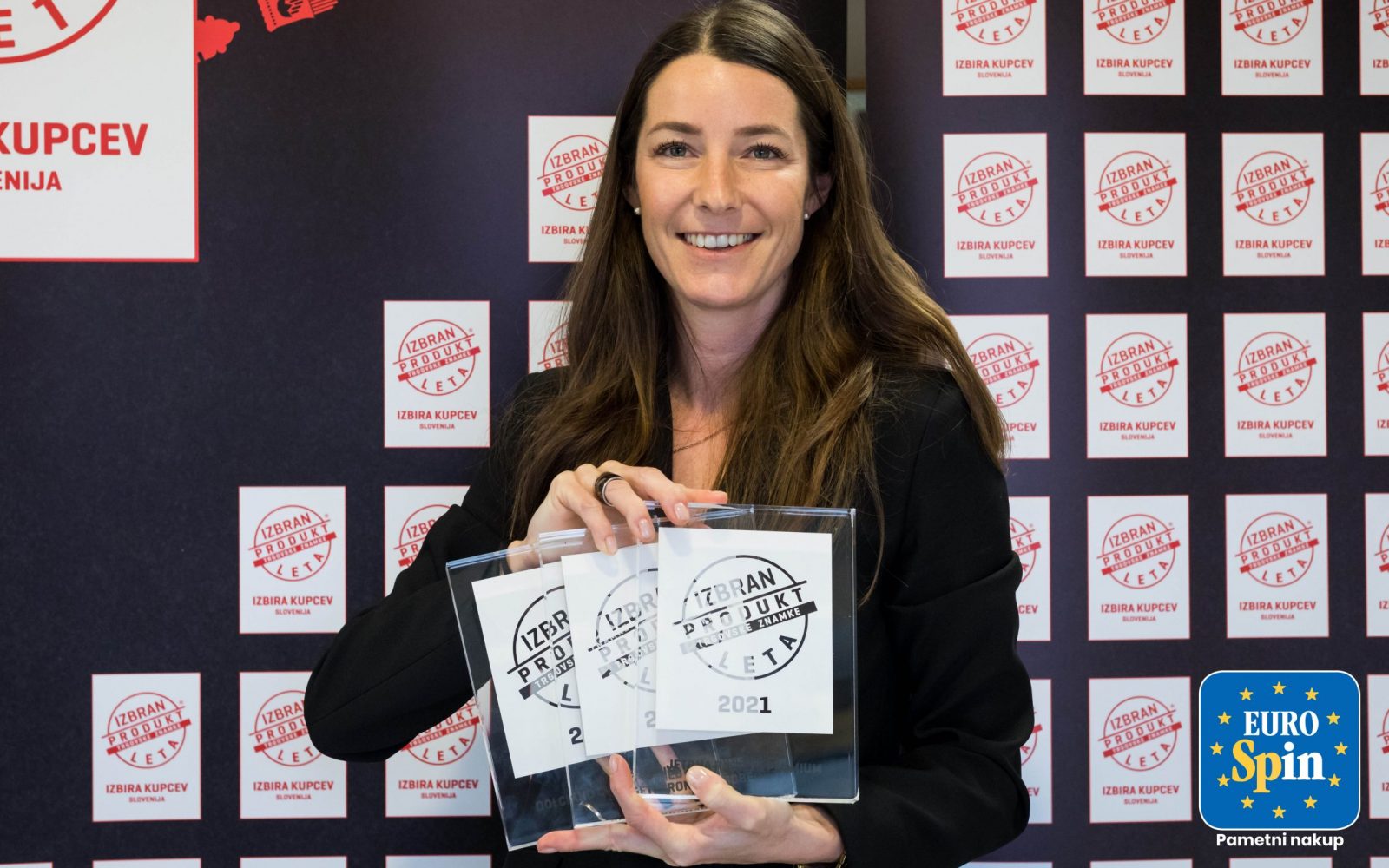 Med nominiranimi izdelki so kupci s svojim mnenjem in izkušnjami Eurospinovim produktom podelili tri laskave nazive IZBRAN PRODUKT TRGOVSKIH ZNAMK LETA 2021.