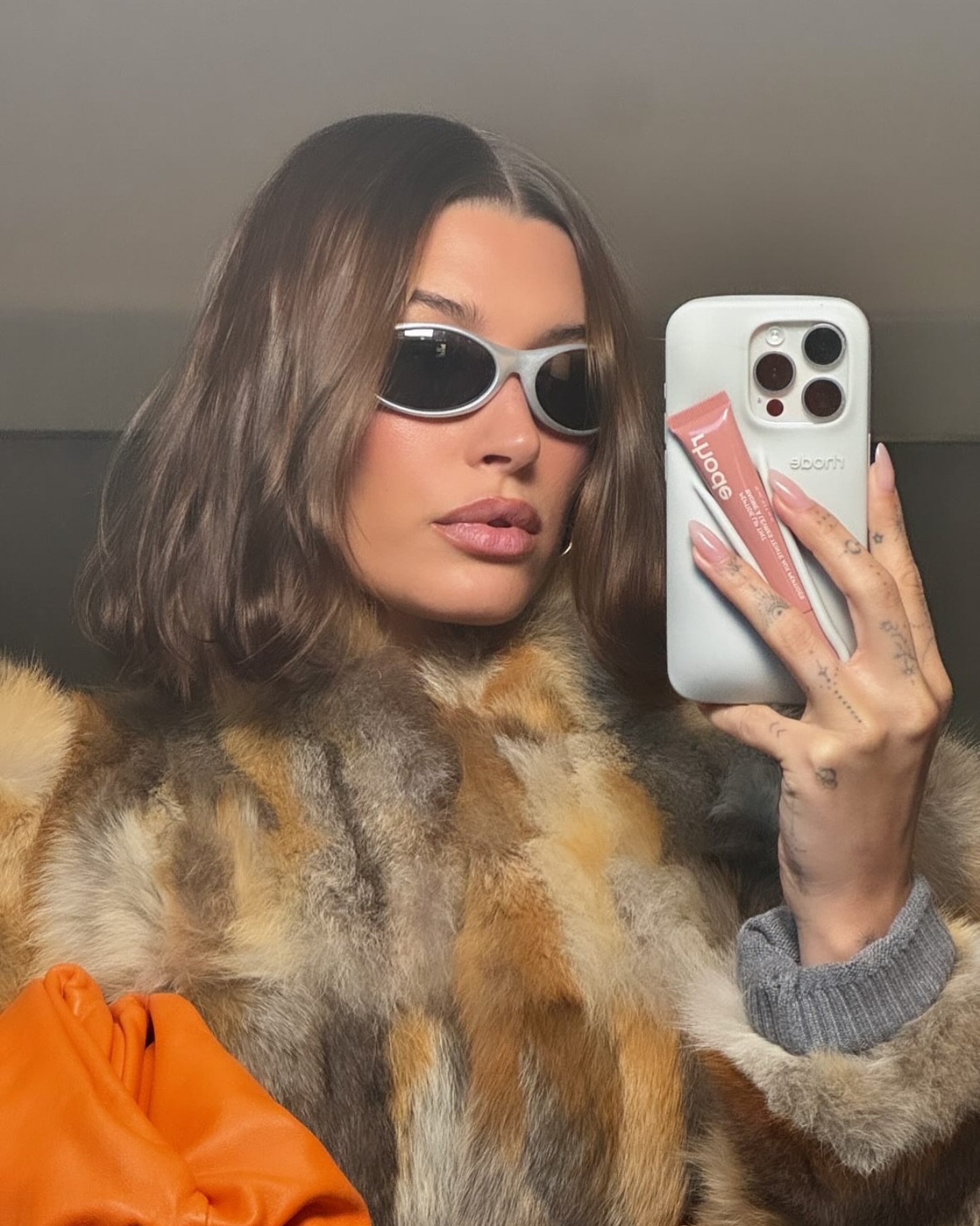 Hailey Bieber je na Instagramu objavila selfie, ki je požel val navdušenja. Pa ne zaradi nje, ampak domiselnega ovitka za telefon, ki ga drži v roki. Na njem je namreč vgrajeno držalo za bleščilo. Tako ovitek kot bleščilo seveda nosita podpis njene blagovne znamke Rhode, ki jo obožujejo lepotne navdušenke po vsem svetu.