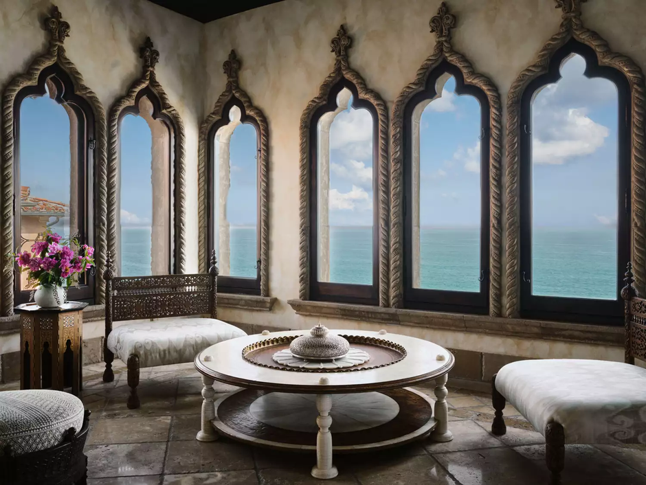 Kot odraz njenega edinstvenega okusa in vseživljenjskega zanimanja za arhitekturo in oblikovanje, je hiša nastala kot rezultat dolgih let potovanj, zasnova hiše pa spominja na beneške palače, velike renesančne vile v Evropi in Palače Alhambra, kjer je jasno viden mavrski vpliv.