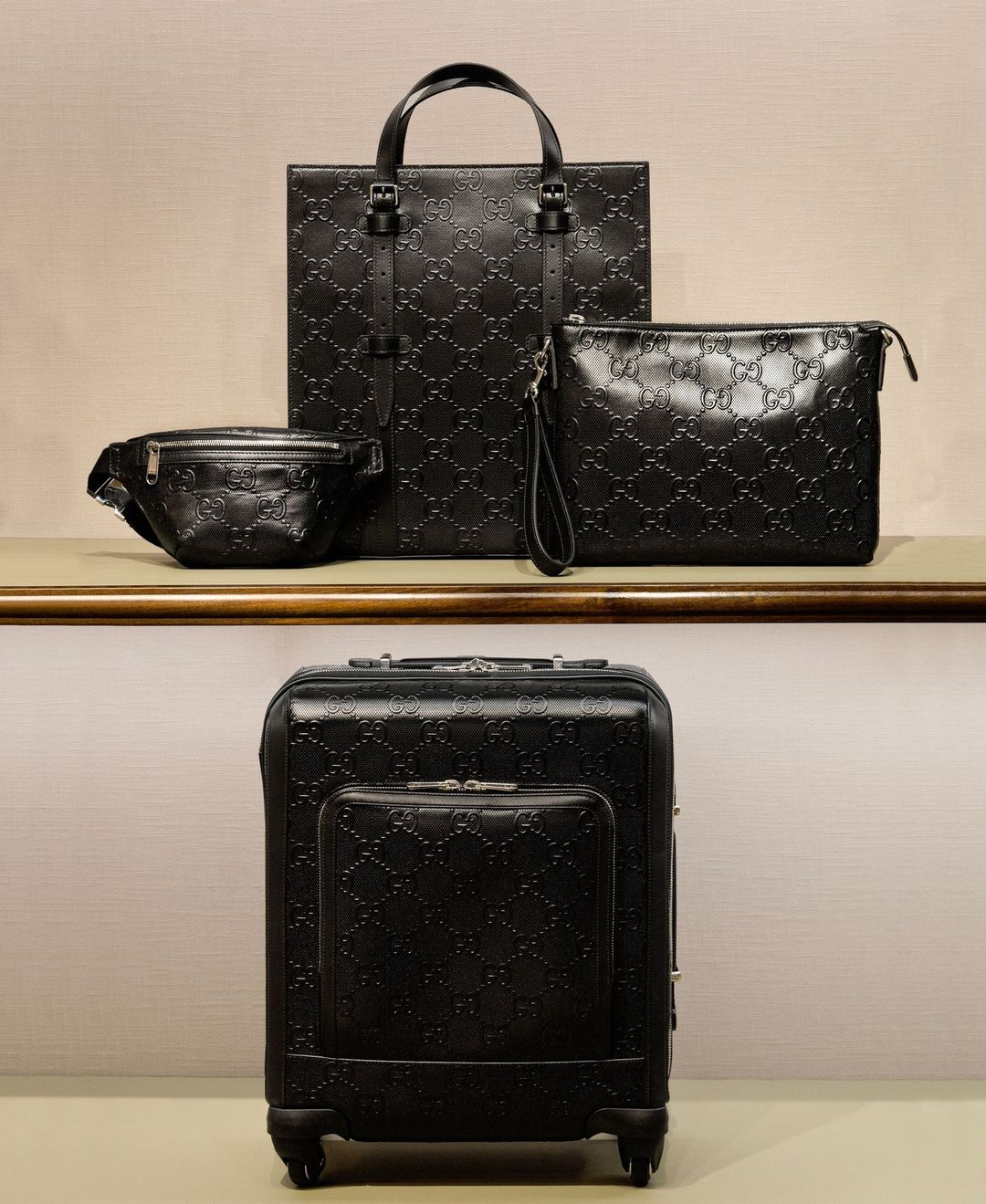 Guccijeva trgovina, ki jo navdihuje potovanje, ponuja celotno paleto osnovnih stvari za potovanje, vključno z edinstvenimi kovčki, škatlami za klobuke in elegantnimi najlonskimi kovčki.