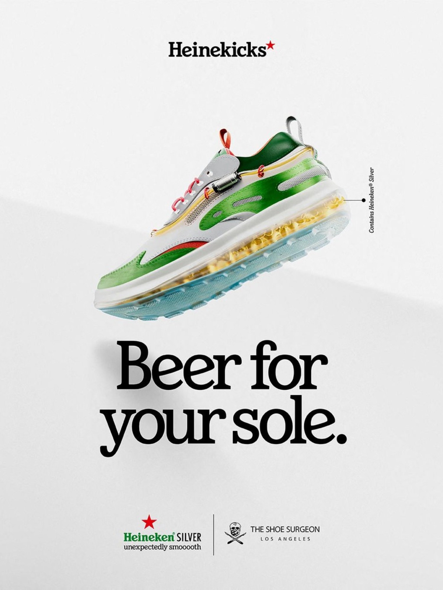“Še nikoli doslej nisem oblikoval superg, ki bi bile prepojene s pivom,” je dejal. Skupaj so superge poimenovali Heinekicks.