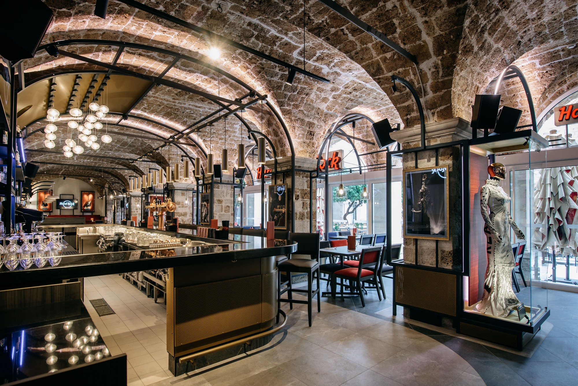 Obsega 850 kvadratnih metrov in lahko gosti več kot 400 gostov v treh glavnih prostorih: notranjem prostoru za sedenje, dih jemajočem atriju v dvoriščnem delu in še na eni zunanji terasi s pogledom na slavni staromestni vodnjak. Notranjost tako kot v vseh kavarnah po svetu krasijo številni ikonični spominki, oblačila in glasbila legendarnih glasbenikov s celega sveta.