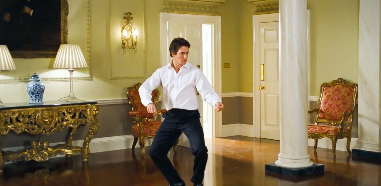 Priljubljeni britanski igralec je v zdaj že ikoničnem filmu upodabljal predsednika vlade, ki v nekem trenutku v rezidenci na slavni Downing Street 10 pleše na slavno pesem Jump (For My Love), dokler ga ne zmoti članica osebja.
