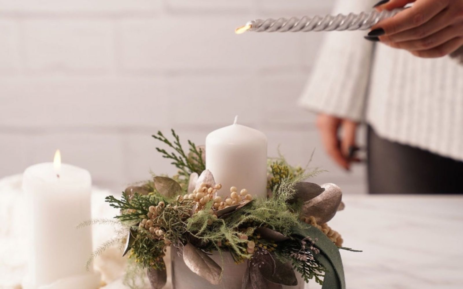 Sveče lahko uporabite ali pa tudi ne, odvisno od tega, kje bo dekoracija postavljena. Na jedilni mizi so sveče nekaj, na kar ne smete pozabiti, meni Metka. “Če bo venček ali dekoracija krasila predsobo, omarico na hodniku ali pred vhodnimi vrati, pa sveče niso potrebne. Je pa res, da sveč za praznike ni nikoli preveč, saj oddajajo čarobno energijo, v prostor vnašajo toplino, sproščenost, veselje in ljubezen, ki so glavne sestavine decembra,” dodaja.
