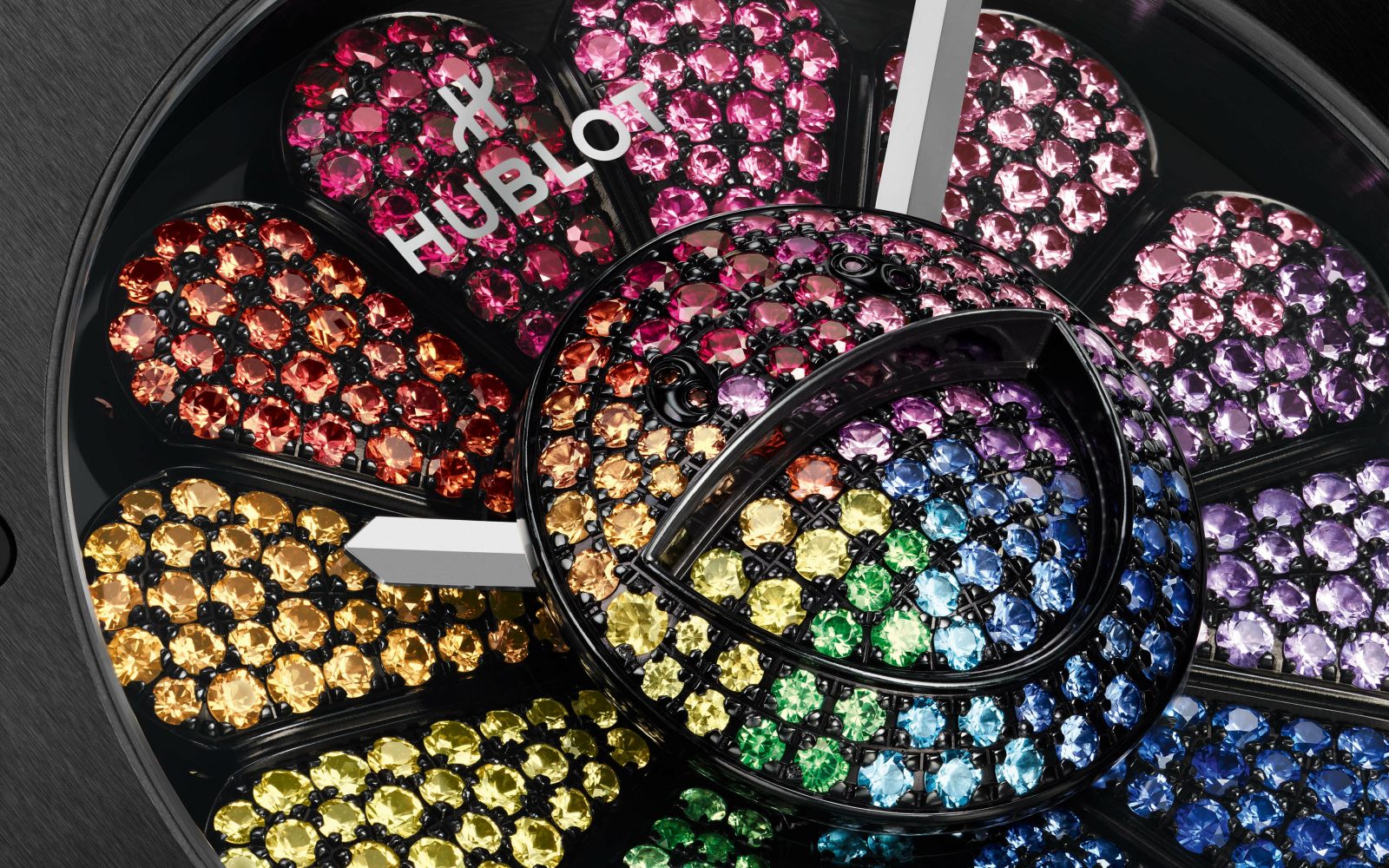 Zapestna ura navdušuje s posebnim sistemom krogličnih ležajev, ki so ga razvili Hublotovi inženirji. Ta omogoča, da cvetni lističi ustvarjajo barvni spektakel, saj se ob vsakem premiku zavrtijo okoli osi. Kinetični učinek lističev ustvarja osupljiv učinek, središče nasmejanega cveta pa je postavljeno na vrh safirnega stekla, ki ustvarja tridimenzionalni učinek.