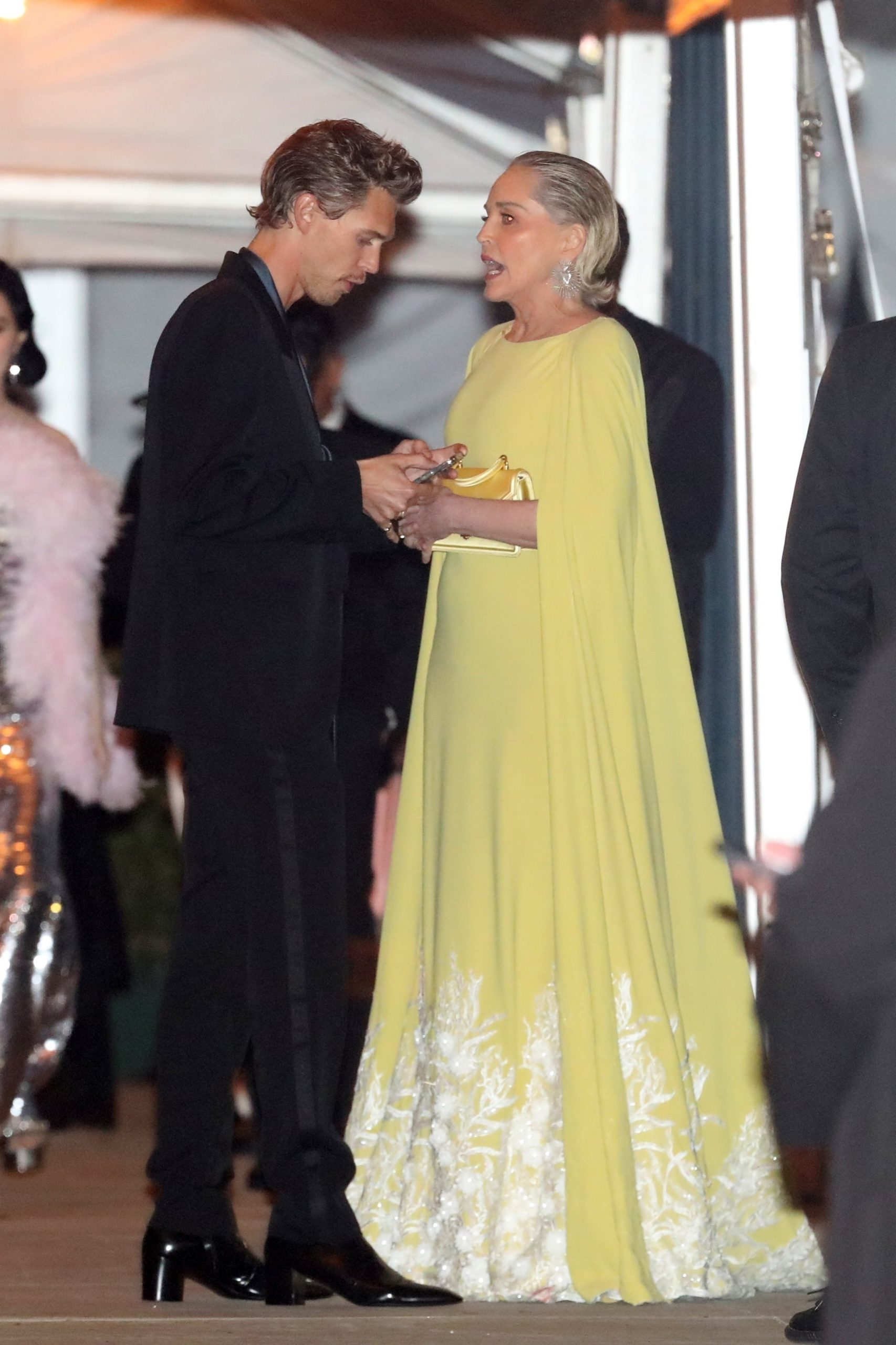 Seveda vsako leto poskrbijo tudi za malce drame in tračev. Tokrat sta bila v središču pozornosti igralska kolega Austin Butler in Sharon Stone, ki sta se zaklepetala pred vhodom. Austin je iz žepa potegnil telefon, igralka pa mu je nekaj na veliko razlagala. Je bila to njena telefonska številka?