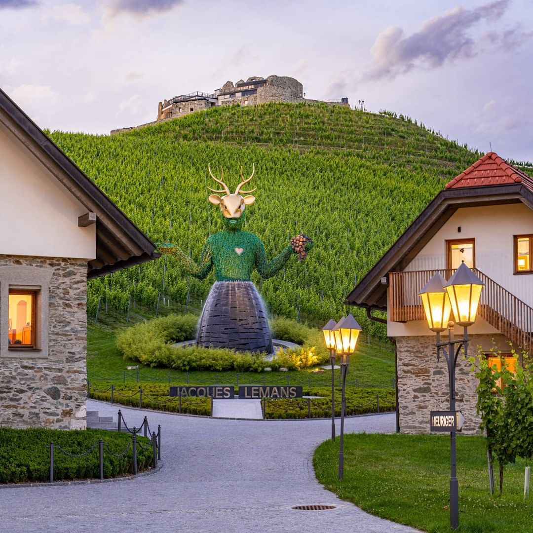 V središču posestva in neposredno pod gradom je postavljena 12-metrska skulptura univerzalnega umetnika Andréja Hellerja, ki predstavlja mogočnega duha narave, ki mu je zaupana zaščita gradu Taggenbrunn, vinogradov in vseh obiskovalcev.