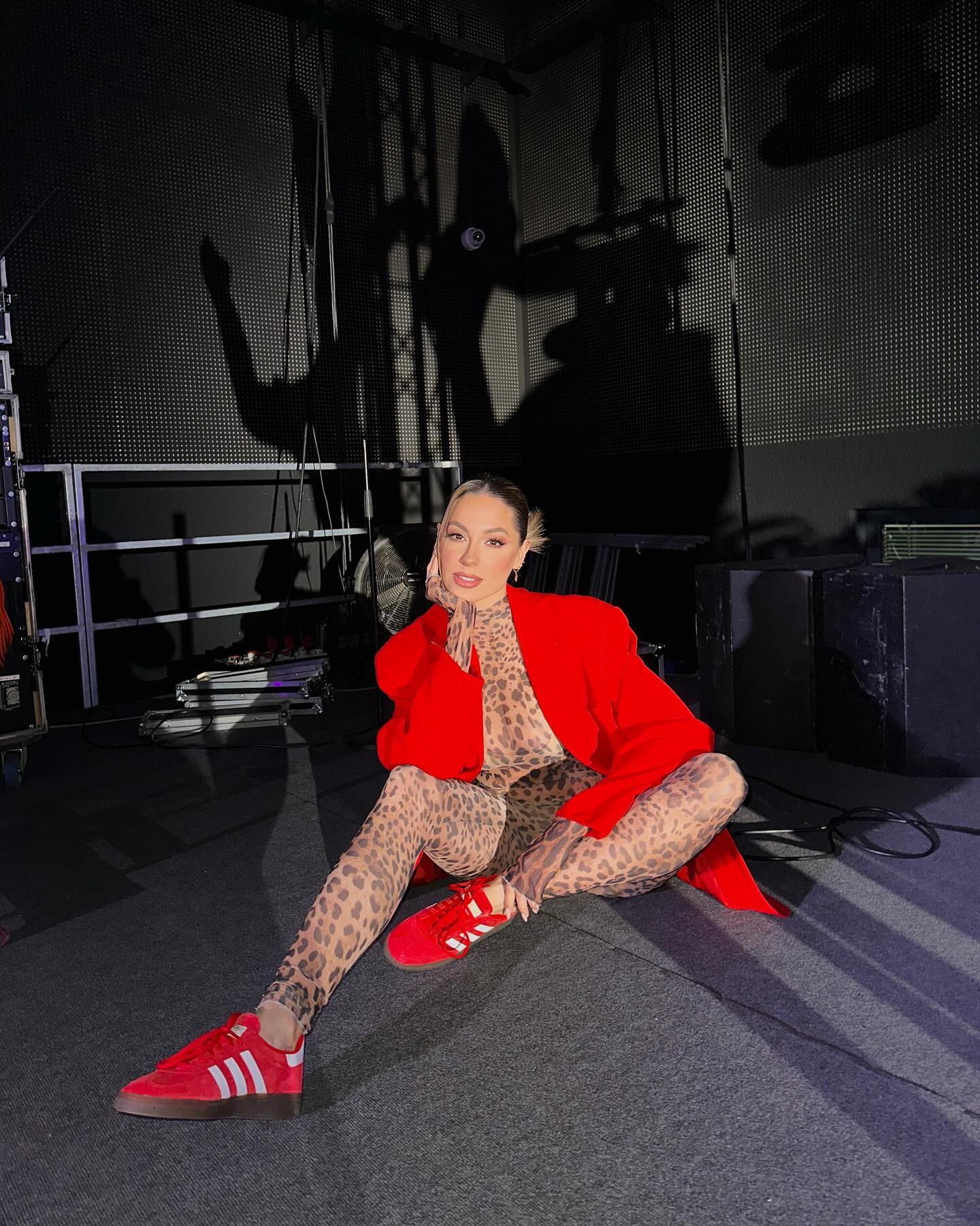 Modne vplivnice se navdušujejo nad leopardjimi pajaci, s katerimi ni mogoče ostati neopažen. Hrvaška pevka Sara Jo ga je skombinirala z rdečim oversized suknjičem in mu z rdečimi supergami Adidas Samba dodala pridih ležernosti.