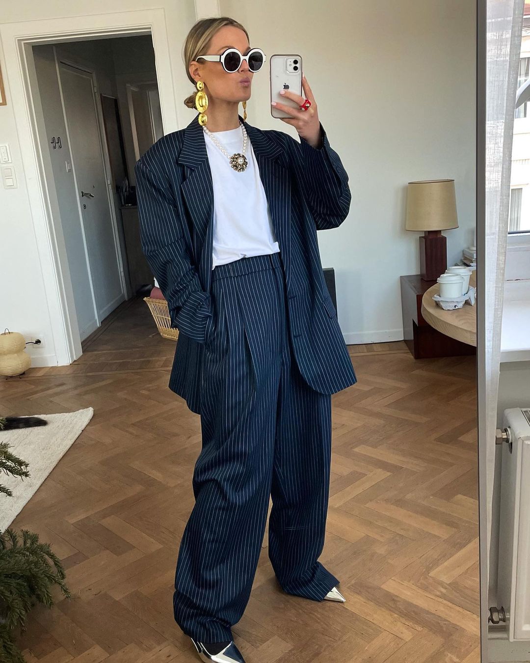 Izbira obutve je povsem vaša – oversized kostim je dobro videti tako z belimi supergami kot elegantnimi salonarji. V obeh primerih pa ne pozabite na modne dodatke, kot so šik torbica, trendovska sončna očala in nakit – z njimi bo vaša oprava dajala vtis brezbrižne elegance in modne naprednosti.