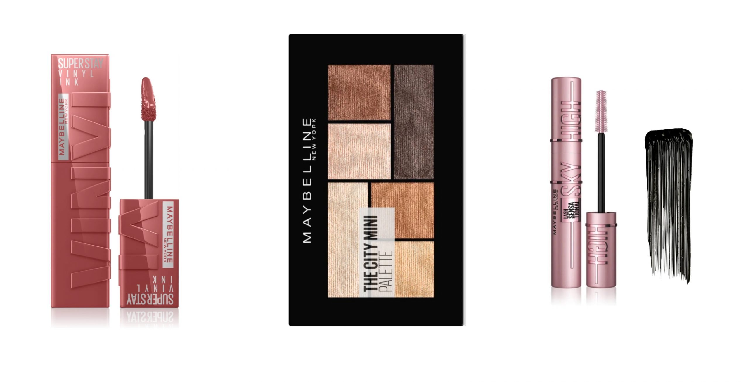 Tekoča šminka Superstay Vinyl Ink je ena najboljših, kar smo jih preizkusili, medtem ko vam za zapeljiv pogled svetujemo paleto senčil The City mini Palette v naravnih odtenkih z nežni sijajem ter maskaro Sky High s silikonskimi ščetinami. Trepalnice podaljša, jih razčeše in zgosti. Če vam je ta videz preveč naraven, ga lahko še vedno popestrite z dodatkom bleščic na enem delu obraza, očeh, ustnicah ali licih.