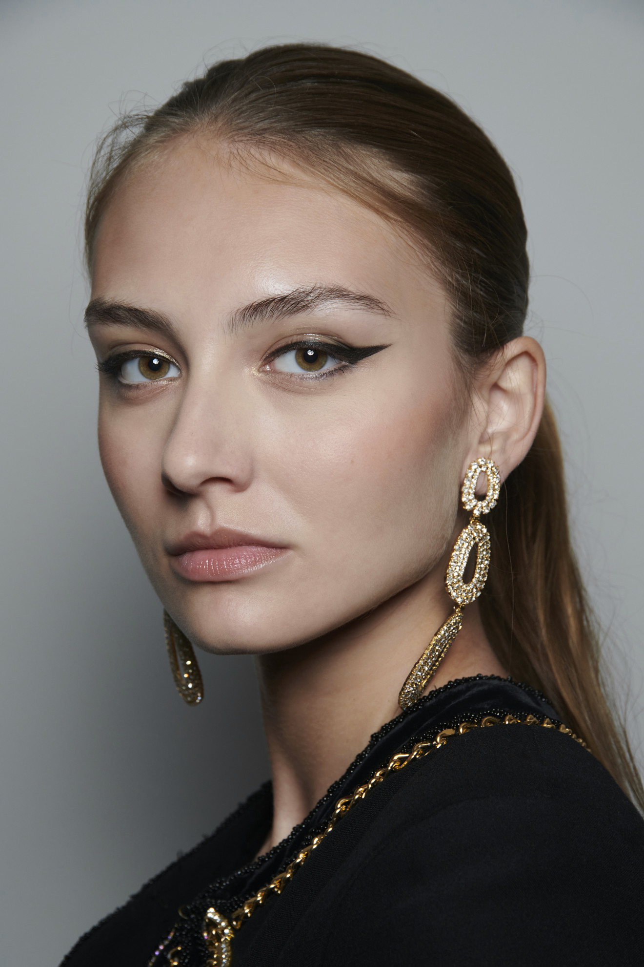 Različne debeline črtal za oči pripovedujejo različno zgodbo in ustvarijo različen videz. Letos smo črtala videvali v slogu ličenja iz devetdesetih let, ki ustvarja omehčan grunge videz z zabrisanim črtalom ter eleganten videz klasičnega črtala v stilu mačjega očesa, pri katerem je zavihek podaljšan vse do konca roba obrvi. Oba videza sta spremljala brezhibna polt, nežno rožnato obarvana lica in ustnice v naravnih odtenkih. Za praznične večere si lahko umislite tudi drznejšo barvo ustnic ali za črtalo celo srebrno, zlato ali bronasto namesto črne.