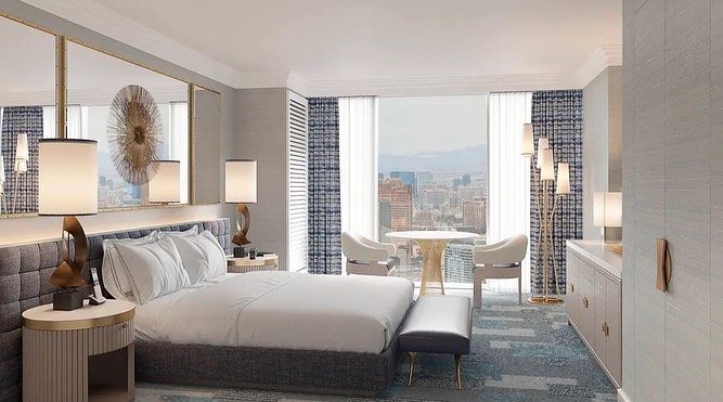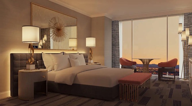 Suite so velike od 92 kvadratnih metrov vse do najrazkošnejših penthouse apartmajev v petih najvišjih nadstropjih, ki bodo merila kar 929 kvadratnih metrov. Interier sob zaznamuje paleta modrih in srebrnih odtenkov te odtenkov koralno-rožnate barve z medeninastimi detajli. Vse razkošne nastanitve imajo obsežna okna od tal do stropa, ki ponujajo čudovit razgled na Strip.