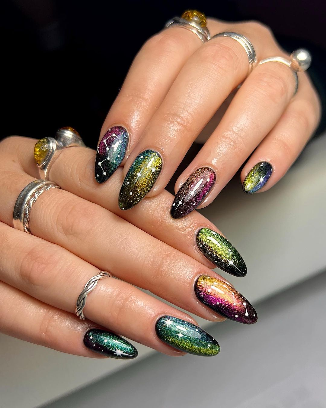 Eden med najbolj `napornih` zodikalnih znamenj je vsekakor škorpijon, ki ima občutljivo in čustveno plat, lahko pa je tudi zelo odločen, samosvoj in trden. Kaj bi lahko to bolje izrazilo kot dizajni nohtov s sijočimi strelami? Zagotovo boste pritegnili pozornost, po kateri tako močno hrepenite!