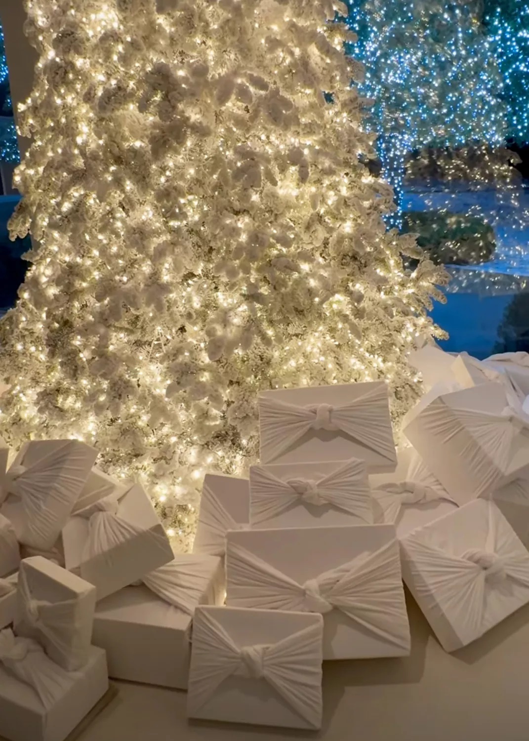 A letos je resničnostna zvezdnica najbolj presenetila z darili ob vznožju božičnega drevesca. Ta so bila povsem v stilu z okrasitvijo ovita zgolj v bel bombažni tekstil, pri čemer je zvezdnica razložila, da gre za bombaž iz njene znamke oblačil, SKIMS.